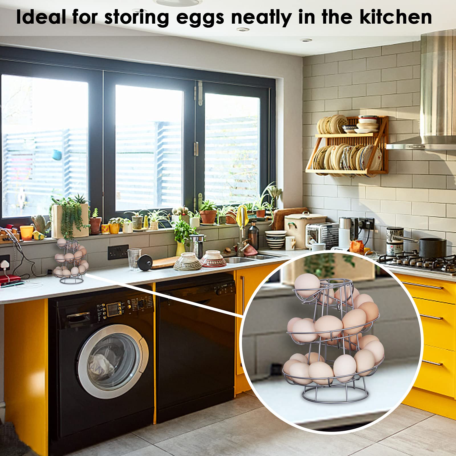 Couleur : conforme à l'image. Nouveau design compact pour une utilisation décorative et intérieure, idéal pour ranger les œufs proprement dans votre cuisine ; garde tous les œufs en vue et les surfaces de travail sans encombrement, économise de l'espace Caractéristiques : * Design en spirale : la structure en spirale unique de ce porte-œufs permet aux œufs plus âgés de rouler vers le bas tout en gardant les nouveaux sur le dessus, ce qui facilite le suivi des œufs qui doivent être utilisés en premier et du gaspillage. Contenu de l'emballage : 1 étagère à œufs pour organiser et ranger les œufs. Ce support en métal chic peut également organiser d'autres essentiels de cuisine, ajoutant du style et de la fonctionnalité à votre intérieur. [Ajout de cuisine polyvalent] Pas seulement pour les œufs. Son design compact s'adapte parfaitement aux petites zones, vous aidant à garder votre cuisine bien rangée. Stgbcst Support à œufs en spirale, support de rangement pour œufs, 24 x 20 x 20 cm, noir, en fer, compact, rotatif, grande capacité, 30-36 œufs, design en spirale en acier inoxydable * Dimensions : 26 x 18 x 18 cm. * Gain de place : ce porte-œufs vertical optimise l'espace de votre plan de travail. Caractéristiques : * Nom de la pièce : étagère à œufs pour organiser et ranger les œufs., Matériau : fer. Utilisation polyvalente : pour ranger des œufs, cet élégant support en métal peut être utilisé pour divers accessoires de cuisine, ce qui en fait un ajout multifonctionnel à votre maison qui améliore l'organisation et la décoration Rangement œufs 20 Capacité Rangement Pour Oeufs Range-œufs Spirale Métal - 36 œufs - Rotation 360° - Antidérapant - Multifonction Capsules Café Rangement Oeufs Métal Porte-œufs Spirale Ce design minimise le risque de casse tout en gardant vos œufs frais.