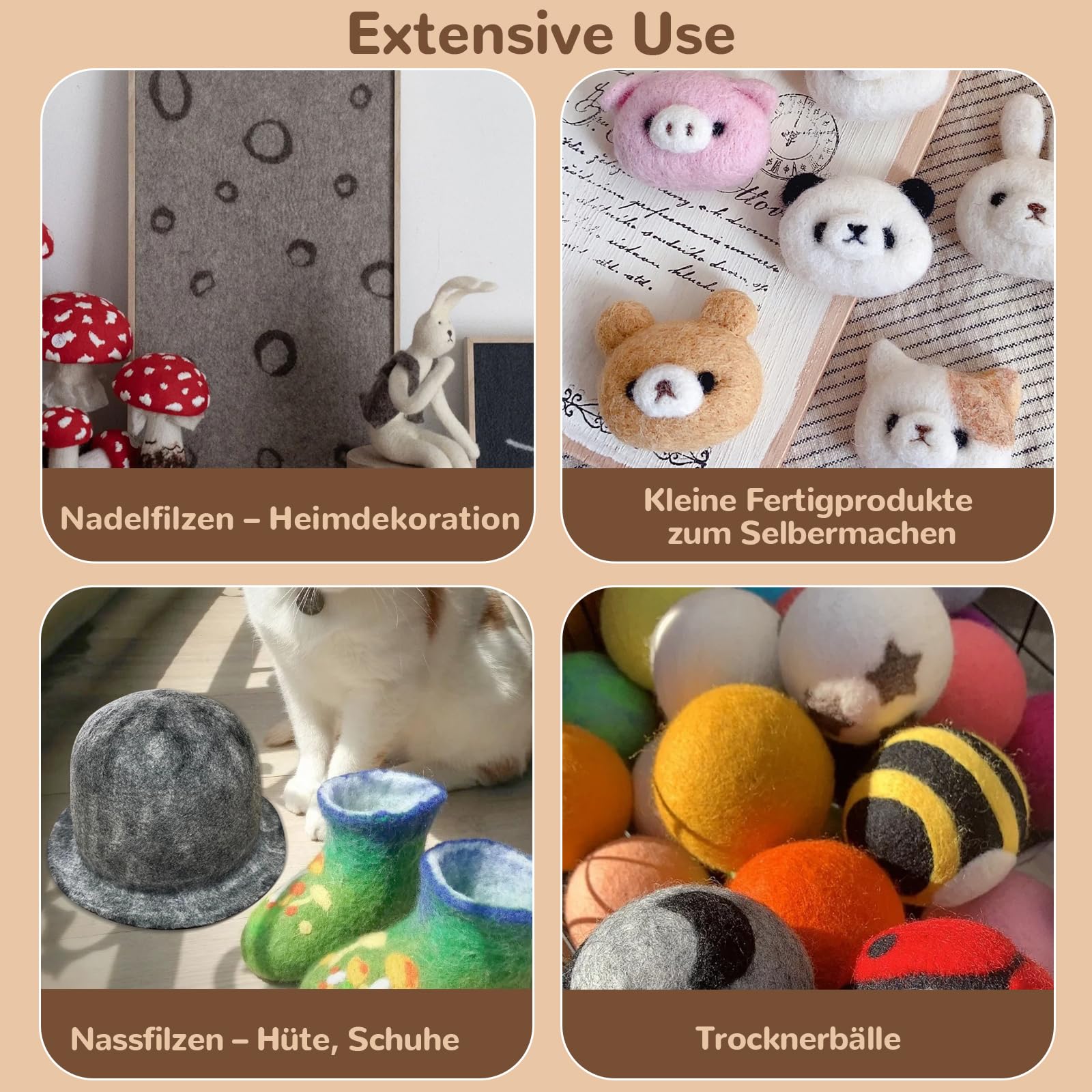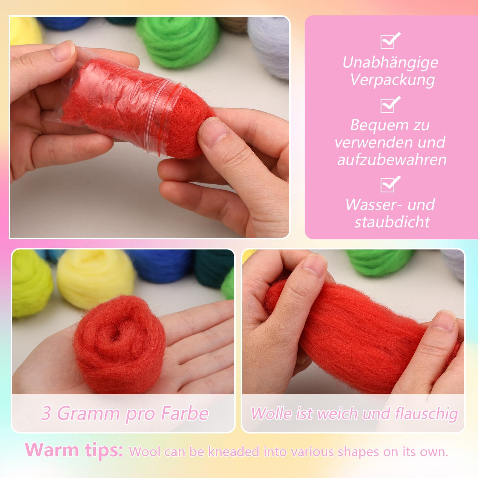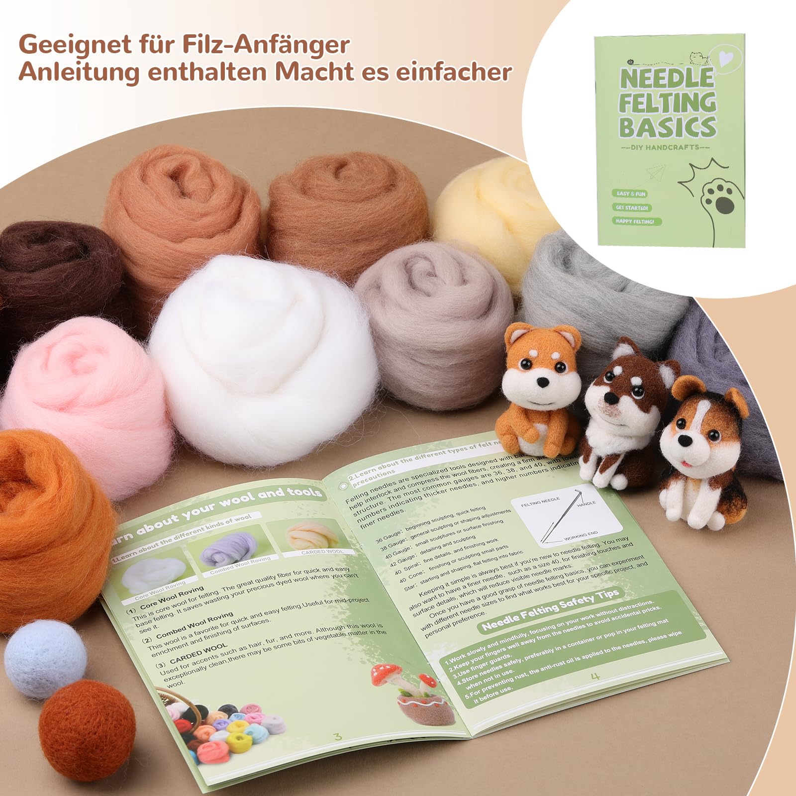 Le kit de laine à feutrer aiguille contient 30 couleurs de laine, un total de 300 g, des couleurs foncées aux couleurs claires. La laine de feutre est l'un des plus beaux matériaux naturels qui peuvent être utilisés pour des idées créatives. Elle est composée à 100 % de pure laine vierge et est disponible dans de nombreux coloris. Choisissez soit la laine la plus fine pour le feutrage à l'aiguille, soit le feutrage humide Le feutre de laine est facile à façonner et garantit que votre projet dure longtemps sans se désagrèger ou se déformer. Le manuel d'utilisation contient des instructions détaillées étape par étape pour le feutrage, qui convient très bien aux débutants. Que vous fassiez des feutres ou d'autres travaux de feutrage, c'est un bon choix pour les amateurs de feutre de laine et les bricoleurs. Matériel Créatif Feutre Laine Reovin Laine à Feutrer En 30 Couleurs, Laine Non Tissée Pour Laine Propre Peignée Qualité La laine claire est mieux adaptée pour feutrer les petits animaux et la laine foncée est adaptée au feutrage des plantes. Sélection professionnelle : le kit de feutrage à l'aiguille est fabriqué en laine colorée de haute qualité, sélectionnée par des professionnels. Vous pouvez l'utiliser pour feutrer de nombreux petits animaux ou plantes mignons. Les couleurs riches peuvent laisser libre cours à votre imagination lors du feutrage à l'aiguille, du feutrage humide et du filage. Laine à filer/feutrer – non traitée 18.5 microns 226 g Le mélange de différentes couleurs de laine peut stimuler votre créativité. 23 couleurs : le kit de laine non tissée contient 23 couleurs de laine, dont 21 laine claire et 2 simples en noir et blanc. Très approprié pour le feutrage de...