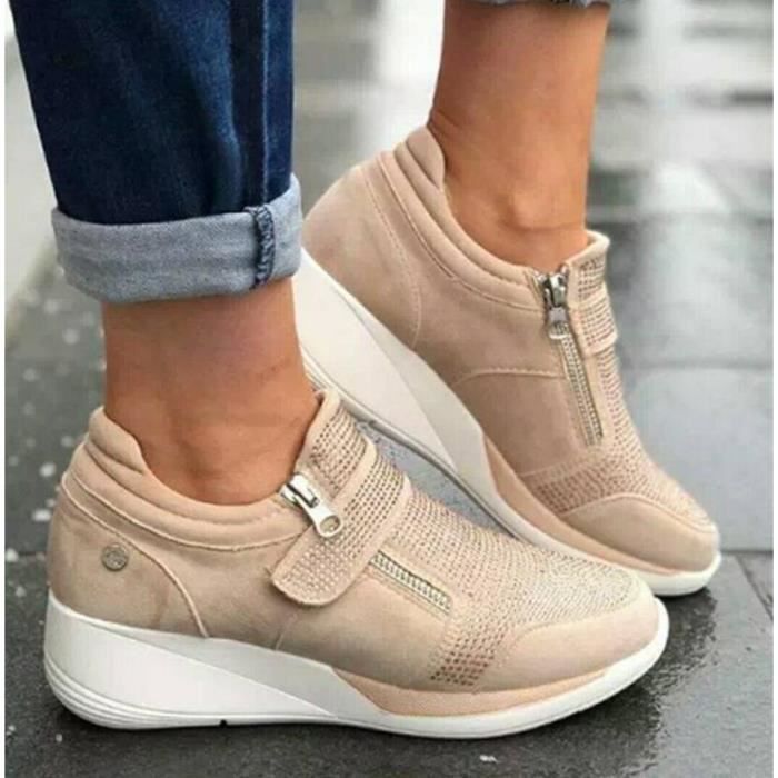 Chaussure Femme Confortable Ete En Maille Sneaker Légères Respirantes Basket Orthopédique À Plateforme Sans Lacets Confort Chic Antidérapante Chaussure De Marche Running Tennis Gym Jogging