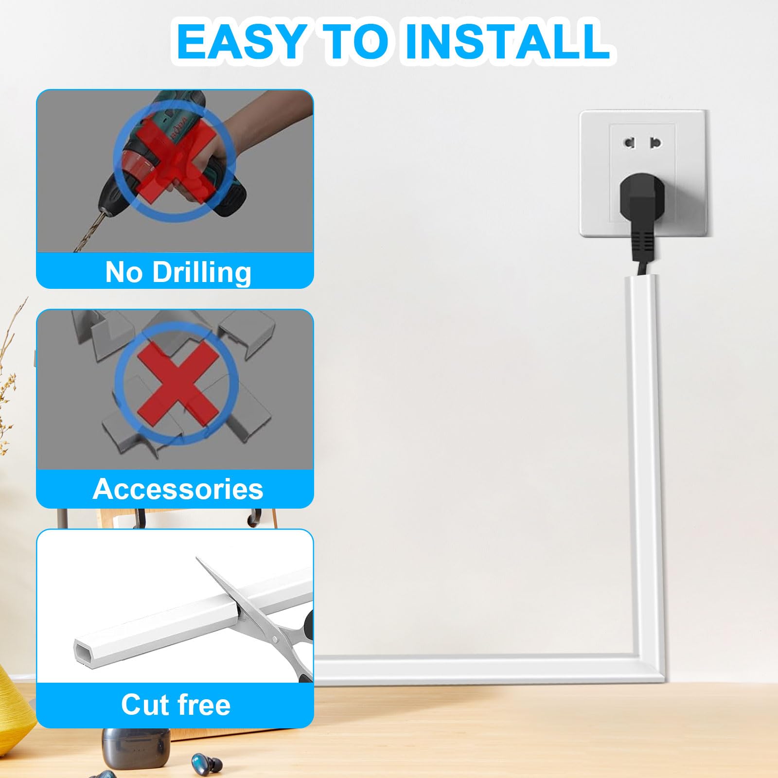 Goulotte autocollante Ptwola blanche pour montage au mur, gestion efficace des câbles et gestion des câbles au sol ou au plafond sans perçage Informations sur le produit : Catégorie : goulotte de protection autocollante pour câbles Couleur : blanc avec dos rouge. 8 goulottes (L 40 cm x l 2,4 cm x H 1,4 cm) : assez grand pour cacher 3 câbles en même temps. · Installation facile avec un design Snap-On Close 【Gestion des câbles】 Notre cache-câble mural offre une solution simple pour cacher et organiser les câbles. Notre cache câble mural garantit une installation rapide et sans outil. Taille du produit : la longueur totale des cache-câbles pour câbles au mur est de 2 m, la largeur extérieure est de 1,53 cm, la hauteur extérieure de 1 cm et la hauteur intérieure de 0,7 cm. Câble Dans Faux ZZLQIAN Goulotte Passe Cable Sol Protege Canal De CâBle Flexible Cache Cable Mural Ce support mural pour cacher les câbles est durable et facile à manipuler. 【Design personnalisable】 Vous pouvez raccourcir la longueur du support de câble avec une scie, l'ajuster individuellement et vous assurer que l'organisateur de câbles s'adapte parfaitement à votre appareil. L'organisateur de câbles peut également être peint pour correspondre à votre mur pour assurer un ajustement parfait et une intégration transparente dans votre décor. La cachette de câble blanche permet une installation et une adaptation sans couture à vos besoins spécifiques. Bande autocollante blanche isolante M1 pour climatiseur Installation rapide : la cachette de câble pour téléviseur mural est livrée avec du ruban adhésif pré-monté. Avec nos moulures, plinthes et goulottes électriques, dites adieu aux câbles apparents. Ces solutions pratiques et esthétiques vous permettent de ranger vos fils électriques en toute simplicité, pour un intérieur harmonieux et sécurisé