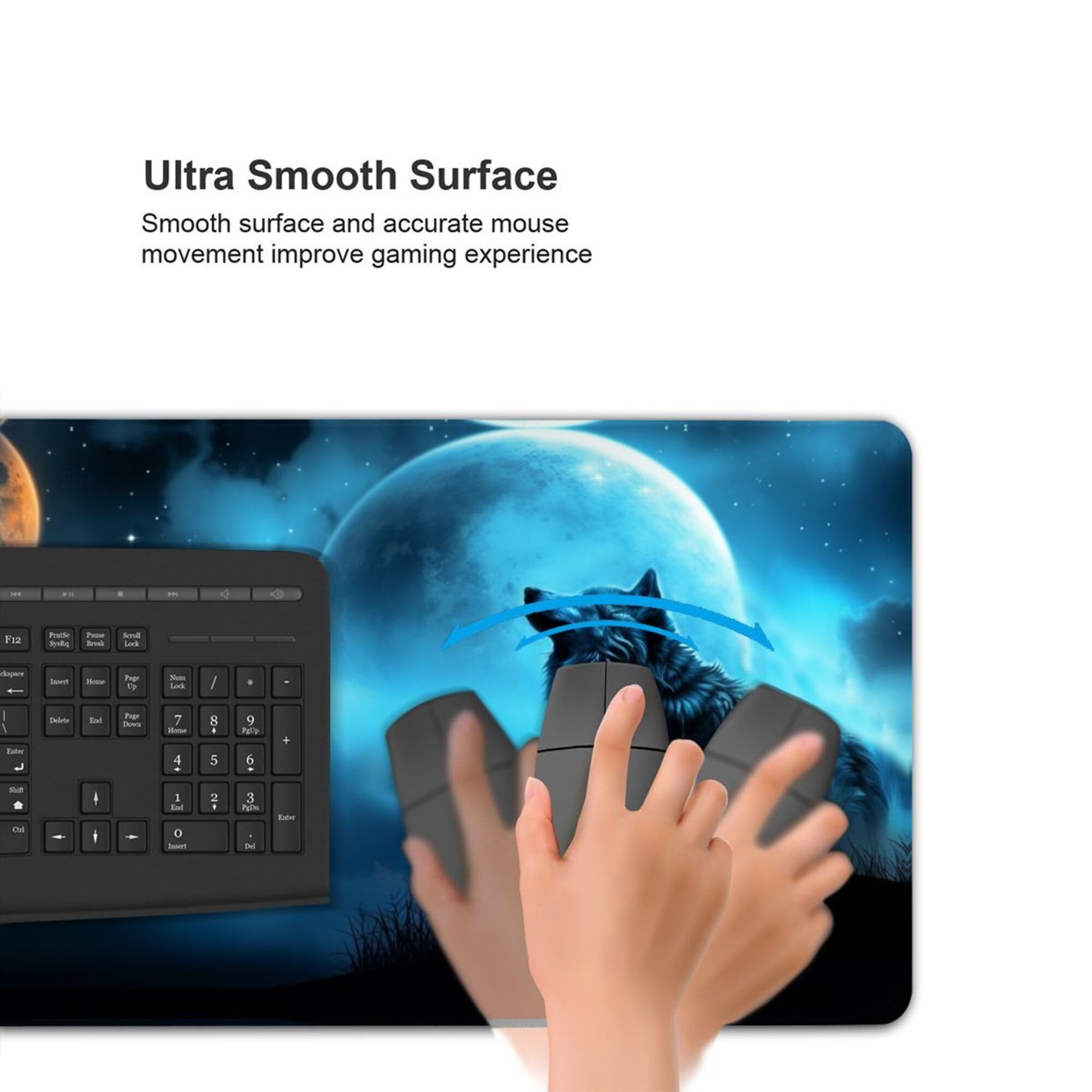 Offre un espace de travail stable pour la souris et le clavier. Offrant un espace généreux pour votre souris de jeu, votre clavier et autres accessoires de bureau. Facile à nettoyer Grâce à sa texture et son épaisseur, ce tapis de souris de bureau reste toujours bien en place. 【Surface lisse】Tissé en fibre douce, ce tapis de souris pour clavier offre une glisse fluide et maintient la souris sur une surface lisse, sans accroc ni ralentissement. 【Utilisation idéale】Parfait pour les jeux, le bureau et la maison. 【Durable et imperméable】Le caoutchouc naturel et le cadre cousu de haute qualité protègent efficacement le tapis de bureau de l'abrasion et de la déformation. Ce sous-main pour clavier et souris est doté d'une surface lavable et facile à nettoyer avec un chiffon humide. Grand tapis de souris de jeu avec clavier mignon et loup cool et lune pour bureau et maison - Tapis de souris étendu avec bords cousus - 39,8 x 74,5 cm 【Excellente adhérence】Ce grand tapis de bureau est doté d'une base en caoutchouc naturel de haute qualité, lui permettant d'adhérer parfaitement à la surface du bureau et de rester immobile. Durable et lavableGrâce à son épaisseur allant jusqu'à 3 mm et à ses bords cousus, ce tapis de souris élégant évite les effilochements et résiste à une utilisation régulière. Il s'adapte à tous les claviers et souris et permet à votre souris de se déplacer librement. Tapis de souris - Des fournitures de bureau plus simples et plus originales Nous nous engageons à produire des fournitures de bureau naturelles, simples et originales afin que nos clients, qui produisent déjà beaucoup de déchets jetables, puissent en profiter pleinement Surface Lisse Précision Souris Grand Tapis De Souris Vert Pour Ordinateur Portable, Tapis De Clavier Tapis Souris Gaming Grand Ce tapis de souris gaming est suffisamment grand pour accueillir un clavier, une souris, un ordinateur portable et d'autres accessoires.