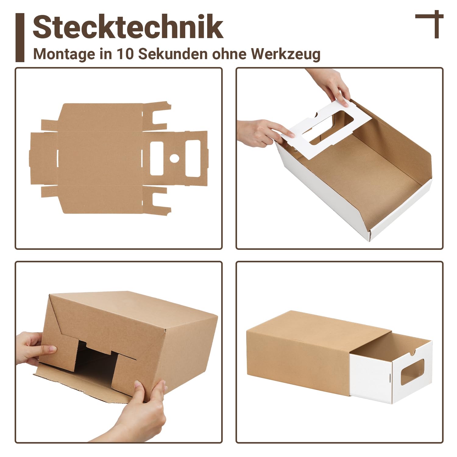 Hebitod Lot de 10 boîtes de rangement à chaussures avec fenêtre - Pliable - 35 × 23 × 13,5 cm - Empilables - Boîtes à chaussures - Tiroir - En carton kraft - Pour jusqu'à la taille 45 Gain de temps grâce à un accès direct. Rangement Chaussure Boîtes Empilables 33x23x14cm Boîtes à Chaussures Empilables HOMIDEC 12 Pièces - Transparentes 33x23x14cm | Rangement Placard Empilable | Ventilation Range Chaussures Shoe Box Dimensions Facile à assembler et empilable : montage en 3 secondes sans outils : pressez, pliez, c'est prêt ! Parfait pour le stockage saisonnier - Protège de la poussière dans l'armoire ou la cave. (s'adapte à toutes les armoires de placard) Panier de rangement en tissu - MANGATA - Lot de 3 boîtes de rangement... ESTINK Boîtes de rangement en plastique 6 pcs 5 L empilables 112258 Indéformable même en cas d'utilisation prolongée – réduit les déchets plastiques Idéal comme boîte d'archivage A4, organisateur de garde-robe ou système de rangement de bureau Empilable jusqu'à 8 niveaux - Parfait pour les petits appartements ou les chambres d'étudiant.