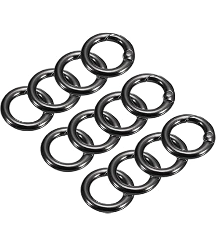 Anneau à ressort en métal : lot de 6., Facile à utiliser avec le ressort intégré, connexion et libération rapides, très pratique à utiliser. Lot de 5 sangles plates en alliage de zinc pour réglage de glissière tri-glisse, 5,1 cm Taille du joint torique : diamètre intérieur : 20 mm., Épaisseur : environ 5 mm. ZoeTekway Lot de 4 mousquetons en alliage de zinc, grands crochets Et utilisé pour accrocher des travaux manuels ou des décorations partout où vous le souhaitez. Ces mousquetons ronds à ressort sont vendus par lot de 6 ou 10. Chaque quantité d'anneau rond printanier représente un paquet. Ces mousquetons ronds à ressort sont fabriqués en alliage de zinc et résistent à la corrosion. De plus, ces anneaux ronds printaniers ne rouillent pas et ne pâlissent pas Mousquetons Ronds Métal Lot De 15 Mousquetons Ronds Dorés De 25 Mm - Anneau Torique - Clips à Anneaux Toriques Plats Pour Sacs à Main 13mm dark black-10 pieces -Mousquetons ronds à mousqueton noir foncé, 2...