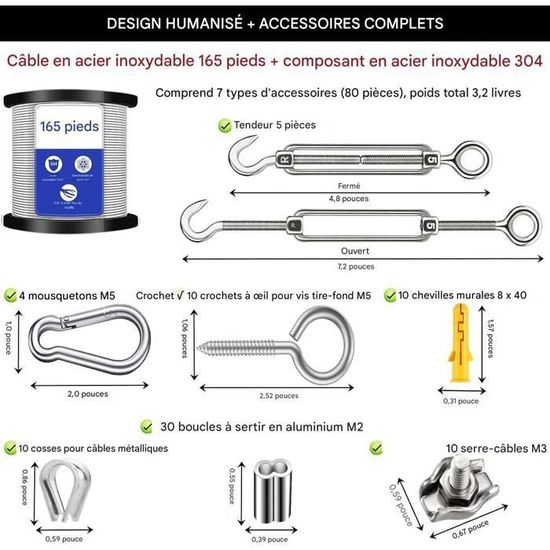 Câble en acier avec œillets : gaine en fil d'acier inoxydable 304 en longueurs de 100 mètres (avec un diamètre de 3 mm, revêtu de PVC pour une surface plus lisse et sans bavures. Durable : il y a suffisamment de cable acier 3mm dans le paquet, la longueur de câble métallique de 3mm peut être librement coupée pour former du câble métallique avec des œillets, de sorte que vous pouvez l'utiliser de manière flexible dans n'importe quel projet, plus fort, plus stable, plus longtemps, et le kit de fil a toujours de bonnes performances anti-corrosion et anti-rouille par mauvais temps. Le cable acier 3mm est composé de 7 torons de fil d'acier, chaque toron comporte 7 fils enroulés de manière serrée. 30m Kit de Corde Câble en Acier Inoxydable, Cable Métallique INSTALLATION FACILE : vous pouvez couper librement la longueur souhaitée avec une cisaille à fil. Sur , vous trouverez une sélection de câbles pour plantes grimpantes, ainsi que des tuteurs, des topières, des liens, des fils et des attaches pour répondre à tous vos besoins en matière de jardinage Treillis Plante Grimpante Exterieur Câble Métallique, Kit De Câble, Adapté Pour Suspendre Des Lumières, Des Serre Cable Acier Cable acier 3mm Cable acier 3mm : la sélection produits Leroy Merlin de ce jeudi au meilleur prix ! Retrouvez ci-après nos 105 offres, marques, références et promotions en stock prêtes à être livrées rapidement dans nos magasins les plus proches de chez vous