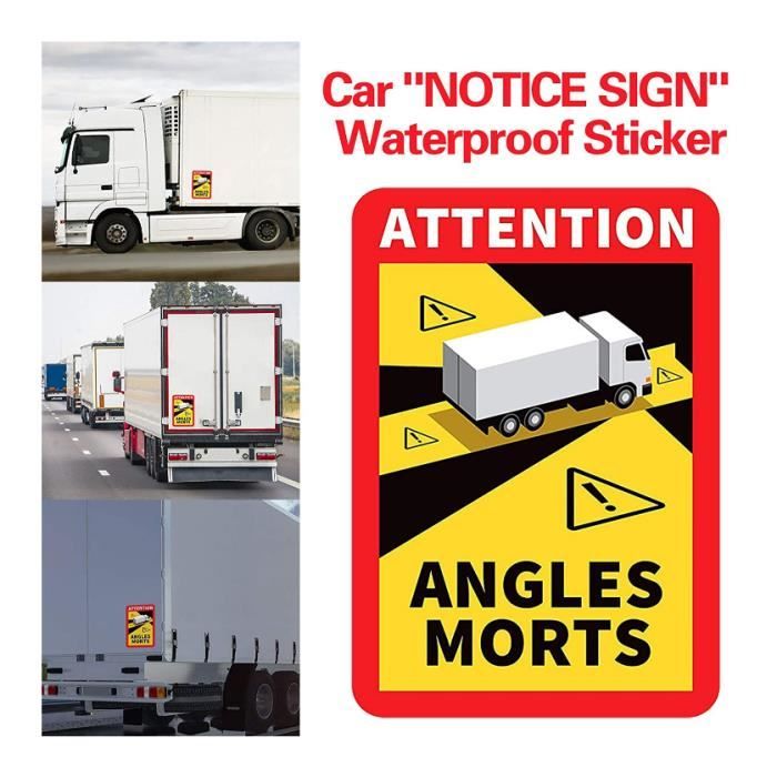 Livraison rapide - Fabrication Française lepni.me Lot de 10 Camion Angles Morts Autocollant | Adhésion Extra Forte et Protection UV | France Véhicules Stickers Poids Lourd | Attention Signe Angles morts sur les véhicules lourds, Autocollant waterproof 170 x 250. Lot de 9 autocollants. Stickers angle mort conformes. En 1 fois Sanction : Ne pas respecter l'obligation de signalisation exposera le conducteur à une contravention de 4è classe. 313-32-1 du code de la route est équipé dune signalisation matérialisant les angles morts conforme au modèle fixé en annexe du présent arrêté. 170 x H. Livraison rapide - Fabrication Française Des couleurs UV spéciales et un vernis UV garantissent que l'autocollant dure le plus longtemps possible... Autocollant pour l'extérieur particulièrement robuste et équipé d'une protection supplémentaire. Arrêté portant application de larticle R. Sticker Angles Morts Véhicules Lourds Autocollant Angles Morts Pour Poids Lourds - Direct Signalétique Autocollant Angle Mort Camping Car