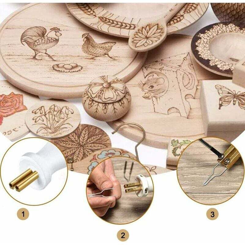 Soudage de précision : la conception du fil de fer à haute température améliore la précision, convient aux réparations électroniques détaillées, aux remplacements de pointes de pyrogravure, à la pointe de combustion Pointe de fer à souder de rechange - COLAXI - E10 - 3x Argent Pointe de rechange pour pyrogravure idéale pour les travaux manuels, les projets de bricolage, etc. Embouts de fil de fer pour améliorer vos projets de combustion du bois avec cet ensemble polyvalent de pointes de stylo pyrogravure Kit d'accessoires complet : fournit un ensemble complet d'outils pour le soudage et la sculpture, éliminant ainsi le besoin d'achats supplémentaires, pointes de pyrogravure sur bois, pointes de fer à souder de remplacement Remplacement des pointes de fer à souder Les pointes du fil de fer chauffent rapidement et maintiennent une température constante, garantissant une combustion douce et uniforme Explorez notre gamme de pyrographes et d' accessoires pour pyrographes comme des pointes interchangeables, conçus pour s'adapter à une variété de surfaces. Retrouvez également nos kits pyrogravure si vous souhaitez découvrir cette technique Kit complet : fournit les outils nécessaires pour le soudage et la sculpture, éliminant ainsi le besoin d'achats supplémentaires, pyrogravure à pointe de fil, brûleur à pointe de fil Le forfait comprend 25 x pointes de stylo pyrogravureCaractéristiques -Pointes en fer robustes : fabriquées à partir de matériaux robustes, ces pointes sont durables et réduisent la fréquence de remplacement des têtes de stylo à bois -Remarque : Diamètre : 1 mm pointe de machine à brûler le bois -Capacité de combustion du bois : étend la fonctionnalité à la combustion du bois, idéal pour les projets de menuiserie artistique, pointe du fil chauffant -Taille : 3,20 x 0,60 x 0,10 cm/1,26 x 0,24 x 0,04 pouces pointes de pyrogravure sur bois -Fil de fer à haute efficacité : la conception à haute température augmente l'efficacité du soudage, idéal pour les travaux électroniques professionnels et les pointes de machine à brûler le bois -Matériau : pointes de fer à souder de remplacement Kit d'accessoires : fournit un ensemble complet d'outils pour le soudage et la sculpture, éliminant ainsi le besoin d'achats supplémentaires de pointes de pyrogravureDescription des marchandises Kit de pointes de fer à souder Découvrez la de la pyrogravure avec ce kit complet de pointes de pyrogravure sur bois. Kit Pyrogravure 25 Pointes Kit De Pyrogravure 97PCS, LCD Fer à Souder Electrique 60W, Température Rechange Fer à Souder Stylo