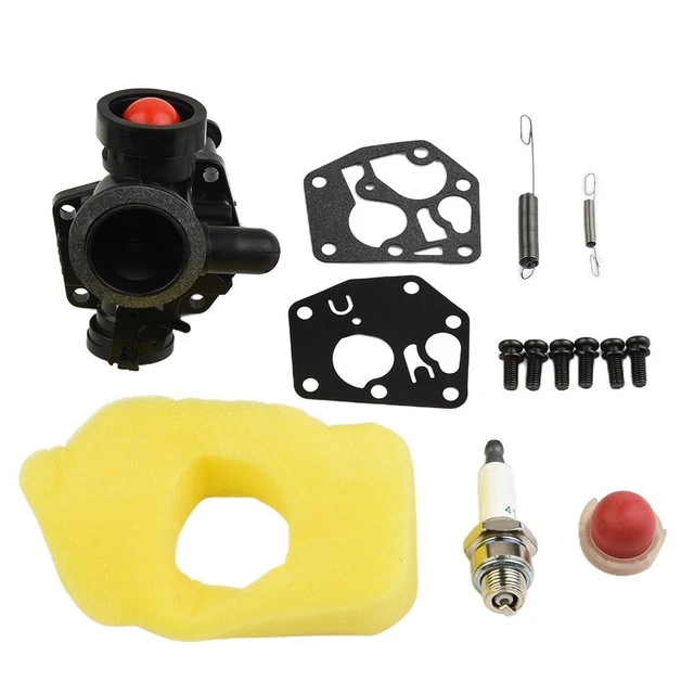 Contenu de l'emballage : 1 kit de carburateur. * Installation facile : avec des instructions claires et tous les composants nécessaires inclus, ce kit simplifie le processus d'installation, ce qui le rend accessible même pour ceux qui ont une expérience mécanique minimale. Économe en carburant : en fournissant le bon mélange de carburant et d'air, le kit de carburateur aide à optimiser la consommation de carburant, ce qui rend votre tondeuse à gazon plus économe en carburant Carburateur 494406 Réservoir de carburant avec carburateur 795477... Kit de remplacement tout-en-un : le kit de carburateur est livré avec tout ce dont vous avez besoin, y compris le carburateur lui-même, les vis, les œillets en caoutchouc, le filtre à air, les membranes, la pompe à carburant et les ressorts de régulateur, pour un remplacement sans tracas. Emiif Optimisez la consommation de carburant avec le kit de carburateur Large compatibilité : compatible avec une variété de modèles de moteur, y compris les séries 98902 et 98982, ce kit offre une polyvalence pour différents types de tondeuses à gazon. Matériaux robustes : fabriqué à partir de matériaux qui peuvent supporter des conditions extérieures difficiles, ce kit est conçu pour durer plus longtemps et minimiser les besoins de remplacement. Pièce Tondeuse Gazon Ressort Régulateur KIT CARBURATEUR ET Filtre Air Haut De Gamme Pour Moteurs De Tondeuse 12Q802 1 EUR 29,92 Pièce Moteur Tondeuse Gazon Emiif Taille : comme sur l'image., Couleur : voir photo. * Performance efficace : conçu pour remplacer plusieurs numéros de pièces OEM, ce carburateur assure une performance optimale du moteur, améliorant l'efficacité du carburant et favorisant un fonctionnement fluide pour votre équipement de pelouse. * Construction : fabriqué avec des matériaux fiables, ce kit de carburateur est conçu pour résister aux rigueurs d'une utilisation en extérieur, offrant une longévité et réduisant le besoin de remplacements fréquents.