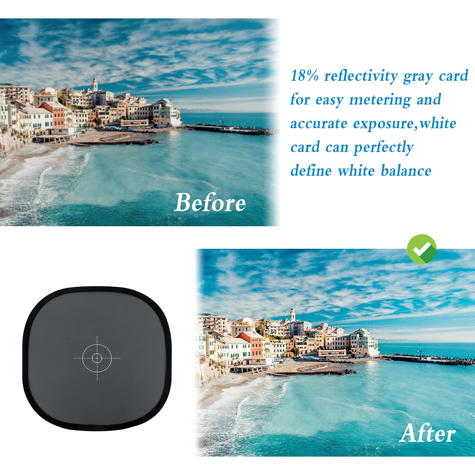 Sa construction robuste assure une durée de vie , ce qui en fait un outil fiable pour les photographes qui exigent la durabilité et la facilité d'entretien. Sa polyvalence étend son utilité, ce qui en fait un ajout précieux à la boîte à outils de tout photographe pour divers scénarios de prise de vue. [Fonctionnalité à double face] Un côté de la carte présente un gris de 18% avec des échelles de mise au point auxiliaires, pour obtenir des valeurs d'exposition précises. L'autre côté est le blanc pur, idéal pour régler la balance des blancs. Sa polyvalence étend son utilité, ce qui en fait un ajout précieux à la boîte à outils de tout photographe pour divers scénarios de tournage. Outil Photo Produit éclairage Remplissage Brrnoo Carte D'équilibre Des Blancs, 30 Cm 18% Exposition Carte Mise Au Point Double Face Pliable Cela garantit que vos photos sont capturées avec un éclairage optimal et une clarté. [Fonctionnalité double face] Un côté de la carte dispose d'un gris de 18% avec des échelles de mise au point auxiliaires, pour obtenir des valeurs d'exposition précises. Spec: Type d'objet: Tableau de mise au point double face Matière: Cuir PU Poids: Env., 115g/4., 1oz Taille du produit: env. [Outil de photographie polyvalent] Au-delà de son utilisation principale comme carte de mise au point, ce produit est également très efficace pour la photographie de produit et l'éclairage de remplissage. Fournir un objet de référence standard pour la détermination de l'exposition en photographie.Le côté gris fonctionne pour la correction d'exposition et le côté blanc pour le réglage de la balance des blancs.Simplifie les problèmes techniques complexes [et facile à nettoyer] Fabriqué à partir de cuir PU de qualité supérieure, ce tableau de mise au point est conçu pour résister à l'usure tout en étant nettoyé sans effort. [Et facile à nettoyer] en cuir PU haut de gamme, cette planche de mise au point est conçue pour résister à l'usure tout en étant nettoyée sans effort. Que vous soyez sur une séance photo ou que vous voyagiez, cet accessoire compact et pratique vous garantit que vous avez toujours les outils dont vous avez besoin pour les tirs. L'autre côté est blanc pur, idéal pour ajuster la balance des blancs. Appareil Photo - Découvrez notre offre JF30432-12 "pouces 30cm 18% pliable gris carte réflecteur équilibre blanc double visage mise au point avec sac de transport. Livraison gratuite à partir de 25€* | Paiement sécurisé | 4x possible | Retour simple et rapide Carte d'équilibre des blancs pliable - 30 cm - Portable [Contrôle d'exposition précis] La carte grise de 18% est spécifiquement conçue pour équilibrer les scènes d'éclairage complexes, fournissant une référence gris neutre qui permet des mesures d'exposition précises à l'aide d'un compteur léger.