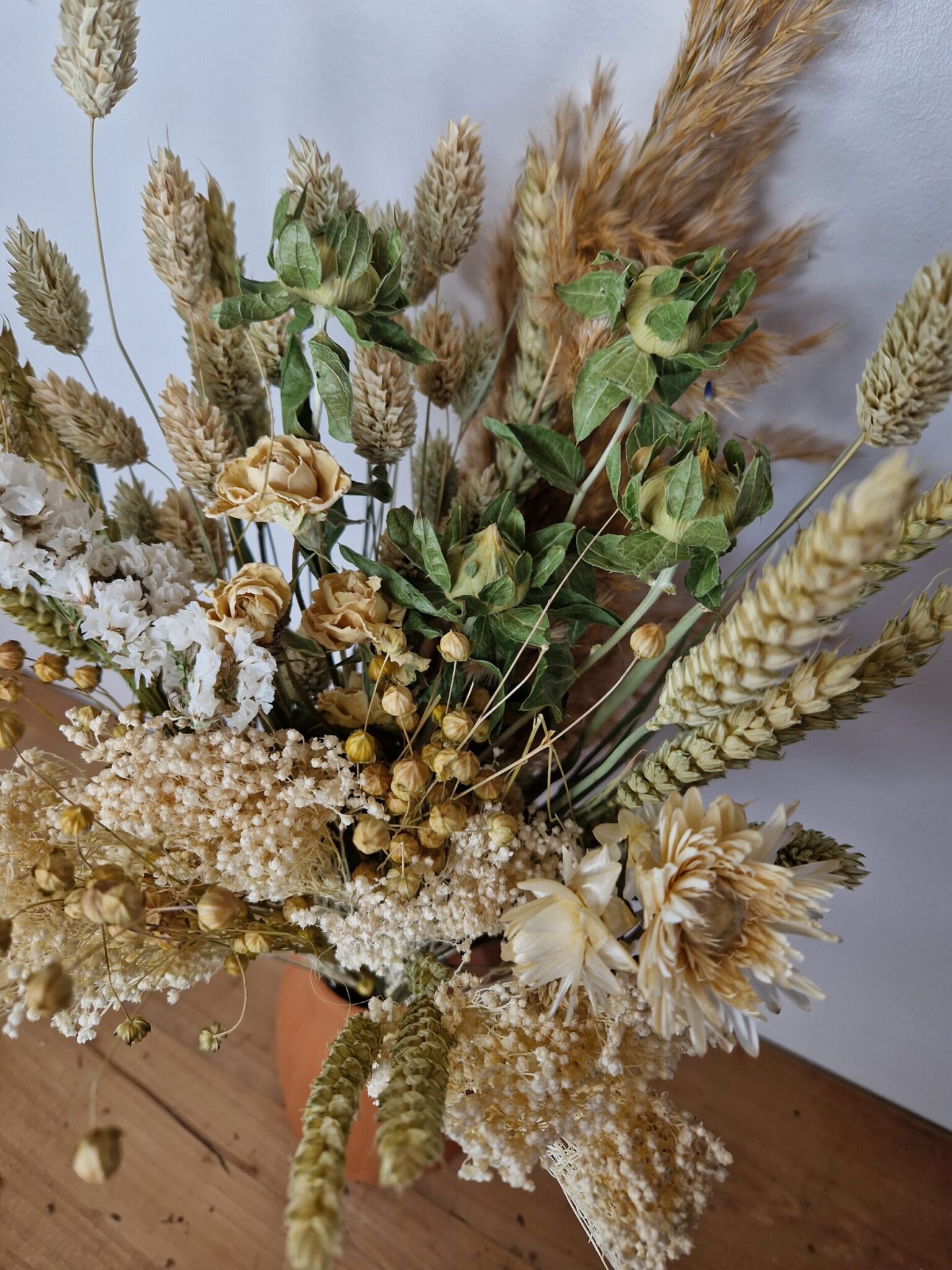 Il est parfait pour de nombreuses utilisations : décoration intérieure et extérieure, remplissage de vases, couronnes de Noël et de porte DIY, centres de table, décoration de salon et compositions champêtres. Naturel et beau : nos produits sont fabriqués selon un processus naturel de séchage à l'air, avec des lignes de pétales claires et des fleurs élégantes UN EXCELLENT CHOIX Parfait pour les projets de bricolage, les bouquets de mariée, les arrangements de table, les compositions florales d’automne… 【Emballage soigné et conseils d'utilisation】Ce bouquet de fleurs séchées d'automne est soigneusement emballé dans un sac pour le protéger des dommages pendant le transport et vous garantir un bouquet parfaitement formé. Nous vous recommandons de le conserver dans un endroit sec, aéré et ensoleillé pendant quelques jours pour permettre aux fleurs de s'épanouir et au parfum de se dissiper. Il dégage un léger parfum naturel. ENTRETIEN SANS TRACAS Nos décorations ne nécessitent aucun entretien ni arrosage. Décoration florale,Boîte de vraies fleurs séchées,1 boîte,cadre Photo Vous avez la liberté de combiner ces magnifiques bouquets, vous permettant ainsi d'explorer le charme de la nature et de créer des compositions florales uniques qui correspondent à vos goûts et à votre style. DES POSSIBILITÉS INFINIES Idéal pour créer des centres de table floraux spectaculaires pour les mariages, les événements spéciaux ou la décoration intérieure. 【Taille polyvalente et personnalisable】D'une longueur totale d'environ 43-45 cm, ce bouquet de fleurs séchées d'automne est conçu pour une grande flexibilité. Décoration florale,Boîte de vraies fleurs séchées,1 boîte,cadre Photo... Lot De 9 Variétés (eucalyptus, Immortelle, Blé 105 Pièces Fleurs Séchées Naturelles Pampas Bouquet Floral Boho Pays Décoration De La Maison Queue De Lapin Herbe Reed Décor De Mariage Arrangement 【Matériaux naturels de haute qualité】Nos bouquets de fleurs séchées d'automne sont composés exclusivement de fleurs 100 % naturelles et conservent leur couleur naturelle.