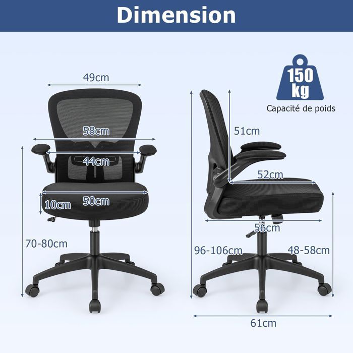 FLEXISPOT Chaise Bureau Ergonomique, Fauteuil de Bureau avec Accoudoirs 3D, Chaise d'Ordinateur Réglable en Hauteur avec Support Lombaire, Siège en Maille, Chaise Pivotante avec roulettes, Noir Chaise Pied Chromé Roulettes Silicone Chaise De Bureau Pivotante Réglable En Tissu Recyclé Gris Et Acier Noir Finley 238544 Siège Pivotant Réglable Hauteur Design et fonctionnalité universels : la chaise moderne s'adapte parfaitement au bureau, au bureau à domicile ou à la salle de jeux. Chaise pivotante ergonomique pour le bureau : offre confort et soutien pendant le travail au bureau ou à la maison. QUALITÉ ET STABILITÉ DE HAUTE QUALITÉ : le pied chromé à cinq bras et roulettes en silicone garantit durabilité et stabilité. La chaise de bureau SPRINGOS allie confort et ergonomie. Avec son appui-tête et son coussin lombaire, elle assure un soutien optimal. Réglable en hauteur (112-122 cm) et équipée de roulettes pivotantes, elle est idéale pour le bureau ou le gaming Support lombaire confortable : le soutien lombaire intégré favorise une posture saine, réduit les tensions dorsales et assure un confort durable. CARACTÉRISTIQUES DU PRODUIT : • Soutien lombaire ergonomique avec sangles élastiques • Capacité de charge maximale élevée de 150 kg • Coussin lombaire zippé facile à nettoyer • Réglable en hauteur et basculant • Piètement à 5 bras avec roulettes pivotantes à 360 ° en caoutchouc nylon • Rembourrage confortable en mousse... Montage et utilisation faciles : la chaise peut être rapidement assemblée grâce aux instructions fournies (français non garanti). Le réglage de la hauteur et l'inclinaison du dossier assurent un ajustement individuel.