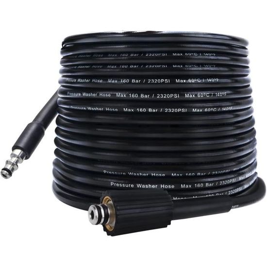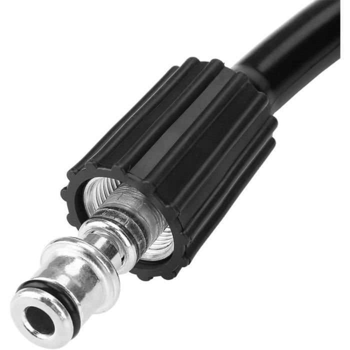 Haute performance de pression : supporte une pression nominale maximale de 2610 PSI (180 bar) et résiste à des températures allant jusqu'à 60 °C. * Taille : diamètre intérieur : 9 mm, diamètre extérieur : 12 mm, longueur : 5 m/6 m/10 m/15 m., * Température maximale : 60 ℃. Compatibilité : ce tuyau de rechange fonctionne pour Karcher pour les nettoyeurs haute pression de la série K (K2-K7) fabriqués à partir de 2009., Il se connecte au nettoyeur haute pression via un connecteur Quick Connect, offrant un ajustement simple avec votre équipement existant. Plusieurs options de longueur : disponible en longueurs de 5 m, 6 m, 10 m ou 15 m pour répondre à vos besoins de nettoyage spécifiques. Nombre de pièces : 1., Contenu de l'emballage : Tuyau de 5 m/6 m/10 m/15 m. Tuyau Karcher K7 Flexible Karcher Tuyau De Rechange Pour Nettoyeur Construction de qualité : fabriqué avec un manchon en caoutchouc et un design tissé en fil d'acier haute tension, ce tuyau offre une flexibilité et une résistance à l'usure améliorées. Connexions conviviales : dispose de raccords à clic innovants aux deux extrémités pour une fixation et un détachement rapides de votre nettoyeur haute pression. Tuyau haute pression de rechange de 10 m, raccord 10 mm x M22, raccord... Raccord Quick Connect Karcher Tuyau Haute Pression Pour Nettoyeur Haute Pression Kärcher K2 à K7 Tuyau Flexible Résistant Usure Convient pour K2 Compact, K4 Full Control, K5 Compact, et beaucoup d'autres modèles de la gamme. *Pression maximale : 180 bar/2610 psi. Le tuyau de rechange STYDDI de 10 m est conçu pour les nettoyeurs haute pression Karcher de la série K (K2 à K7) à partir de 2009. Il est équipé d'un raccord rapide Click, facilitant son utilisation avec divers modèles de nettoyeurs haute pression * Pression d'éclatement : 540 bar/7830 psi. Avec une capacité de pression d'éclatement de 7830 PSI (540 bar), ce tuyau robuste offre un débit d'eau constant pour des tâches de nettoyage efficaces autour de votre jardin, terrasse ou véhicule. * Design convivial : doté de raccords à clic innovants aux deux extrémités, le tuyau permet une connexion et une déconnexion sans effort du nettoyeur haute pression, réduisant considérablement le temps d'installation et améliorant la commodité de l'utilisateur. La portée supplémentaire vous aide à nettoyer les zones difficiles d'accès sans déplacer votre nettoyeur haute pression, ce qui rend les tâches de nettoyage en extérieur plus pratiques et efficaces.