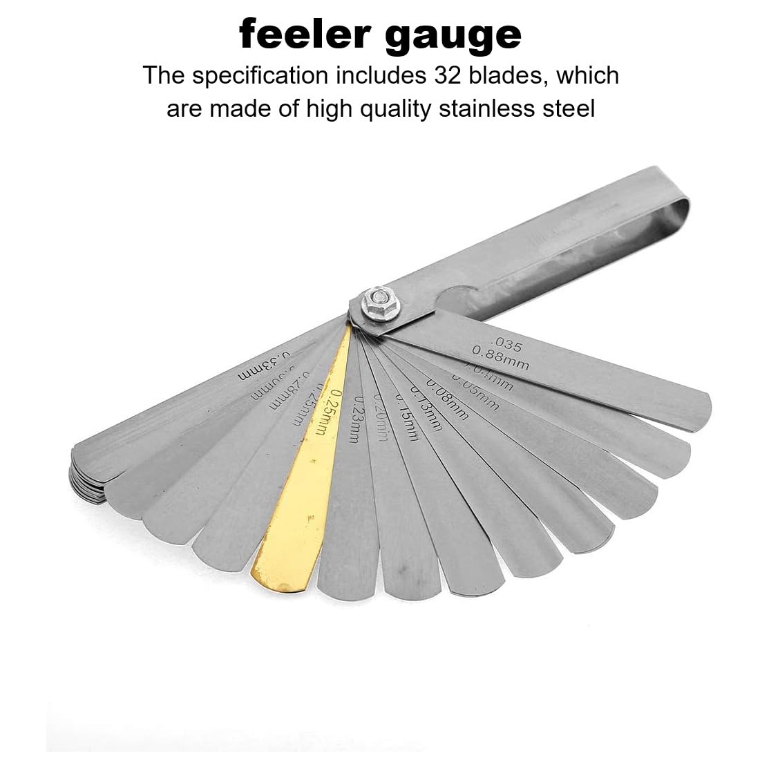 Ensemble de 32 jauges à bouchon métriques et impériales : Un ensemble de 32 jauges à bouchon de différentes épaisseurs, fournies avec des échelles métriques (mm) et impériales pour répondre aux besoins de maintenance des machines, d'arpentage technique et d'autres scénarios, un ensemble d'outils pour s'adapter à une variété de normes de mesure. TEOZBLU 32 Lames Jauge d'Épaisseur, Jauges D'épaisseur en Acier Inoxydabl, Jauge D'épaisseur Pliante, Double marquage Métrique et Impérial Outil pour mesurer la Largeur ou l'épaisseur de l'écart Matériau à haute élasticité et durable : la pièce de règle de prise est faite d'un matériau élastique et résistant, qui n'est pas facile à déformer lors de la mesure, et peut maintenir la précision même après une utilisation à long terme et fréquente, et peut être pliée et insérée dans l'espace à plusieurs reprises, ce qui est durable et fiable. Outil Mesure Mécanique Jauge D'Épaisseur 32 Lames En Acier Fabrication soignée sans bavures : surface lisse, sans bavures, insérée dans l'espace de la pièce sans endommager la surface, mesure précise de la taille de l'espace, adaptée aux chemins de fer, aux usines, à la réparation automobile et à d'autres scénarios, offrant une garantie fiable pour une mesure de précision. Jauge d'épaisseur fabriqué en acier inoxydable avec 32 lames d'épaisseur différentes. · ✓ Identification facile Jauge D'épaisseur à Lames Calibre à Lames Pliantes Jauge D'Épaisseur 32 Lames En Acier Inoxydable - Double Échelle Métrique/Impériale - Pour Mécanique & Impression 3D Lames Mesure Précision Jeux De Cale Soupape Jauge d'épaisseur de lame EJ.life - 32 lames acier inoxydable...