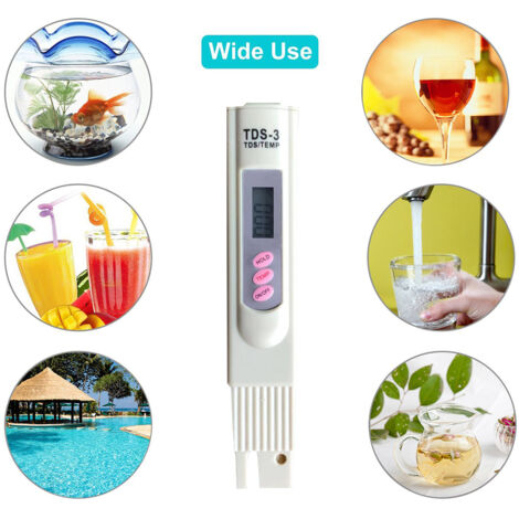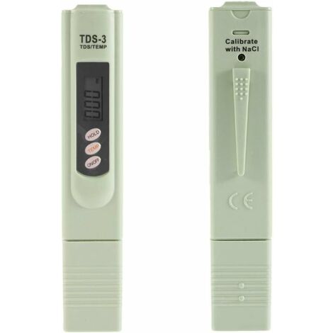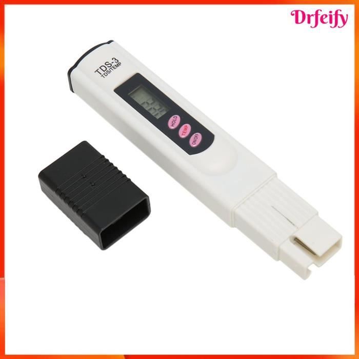 Les instructions d'utilisation dans différents domaines d'application, tels que l'eau potable, les aquariums et les piscines, sont incluses dans la description du produit. (Cet appareil ne mesure pas ces paramètres. Une évaluation complète incluant des facteurs supplémentaires tels que la concentration en ions de métaux lourds et le nombre de bactéries est nécessaire. Changement de mode sans effort : Basculez sans effort entre la mesure TDS et les lectures de conductivité d'une simple pression sur le bouton, le TDS étant l'affichage par défaut. TDS est un indicateur du niveau d'impureté de l'eau, mais ne doit pas déterminer la qualité de l'eau seule. Yakamoz Mètre TDS-3 de l‘Eau potable LCD Numérique Portable Testeur Innovation à double usage : Ce compteur TDS et thermomètre 2 en 1 pour l'eau potable révolutionne la surveillance de la qualité de votre eau. Mode d'économie d'énergie intelligent : Conçu dans un souci d'économie d'énergie, notre appareil offre une détection et un affichage instantanés, fournissant des lectures claires pour une visualisation et un enregistrement sans tracas. Sécurité professionnelle de la qualité de l'eau : Notre testeur d'eau et de TDS offre un moyen fiable de contrôler la qualité de l'eau potable, de l'eau de piscine, de l'eau d'aquarium et du laboratoire Ph Metre Gasea LCD TDS-3 Mètre Pour Qualité De L'eau Potable Testeur Numérique Température PPM Test Mesureur Pen Analyseur Pour Mesurer L'eau Potable,Culture Hydroponique, Aquarium, Piscine Et Spa Test Aquarium Eau Douce (Cet appareil ne mesure pas ces paramètres). ) Mode d'emploi Utilisation : appuyez deux fois sur le bouton pour basculer entre Celsius et Fahrenheit. De 1 000 à 9 900 ppm, la résolution est de 10 ppmApproprié: Cet article peut être utilisé dans les purificateurs d'eau et les filtres, la nourriture (légumes, fruits) et la surveillance de la qualité de la boisson, les piscines, les spas, les aquariums et la culture hydroponique Si vous ne l'utilisez pas pendant une longue période, retirez la batterie pour éviter la décharge. Capacités de mesure : Fonctionnant à une tension d'alimentation de 3 V, notre appareil dispose d'une vaste plage de mesure, y compris des niveaux TDS de 0 à 9990 ppm, des températures allant de 0,1 °C à 65,0 °C, le tout avec une précision remarquable de ± 2 %. Remarques importantes : Le TDS, bien qu'il indique les niveaux d'impureté de l'eau, ne doit pas déterminer à lui seul la qualité de l'eau. Application polyvalente : Ce compteur TDS est polyvalent pour les environnements résidentiels et de laboratoire, capable d'évaluer la qualité de l'eau à partir de diverses sources, notamment l'eau potable, l'eau du robinet, les écosystèmes d'aquarium, les étangs, les piscines, les systèmes d'eau filtrée et l'eau en bouteille, garantissant une analyse précise pour divers besoins.