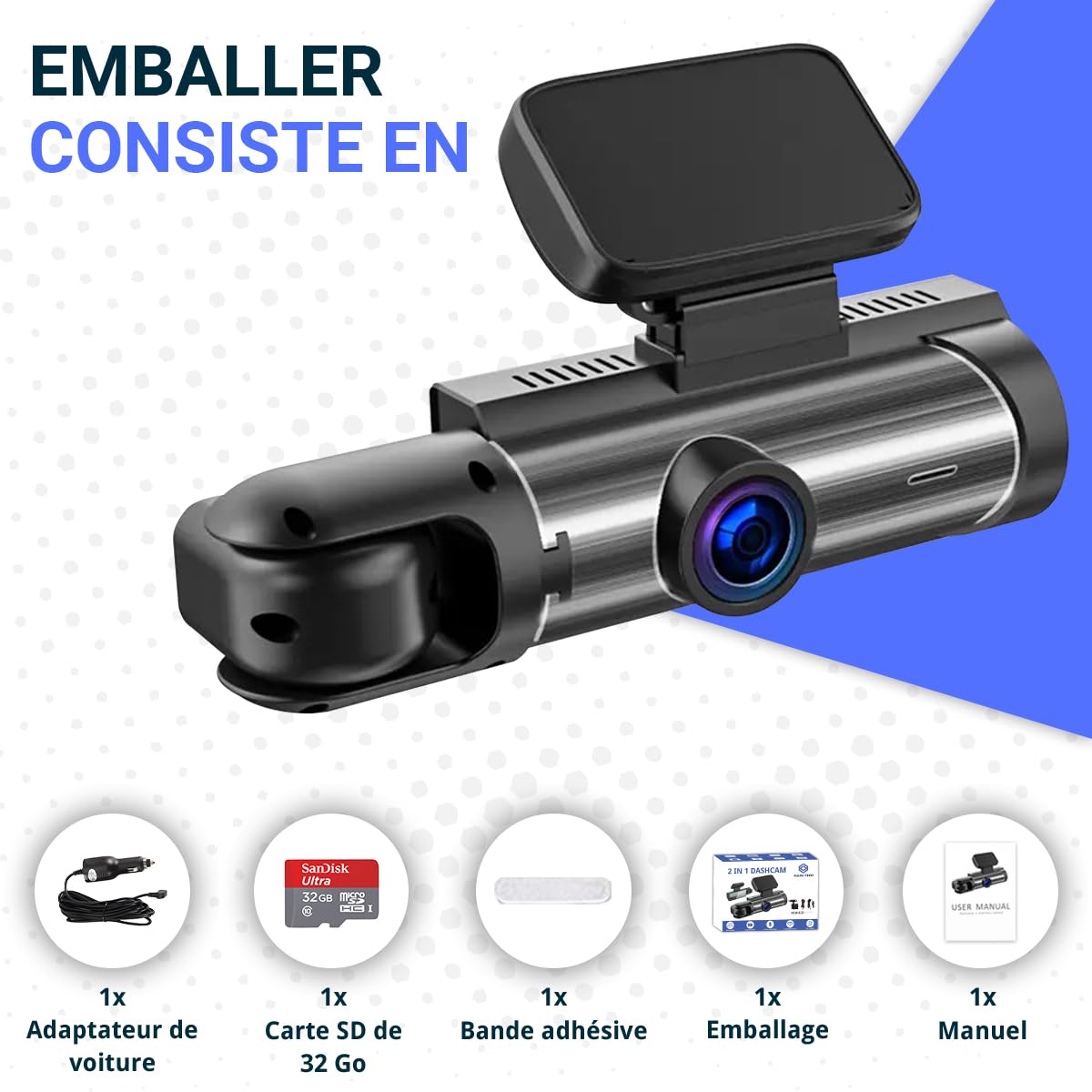 Fonctionnalité et commodité : Conçu pour offrir une protection complète Attention : pour filmer avec la dashcam, une carte Micro SD doit être insérée dans la caméra (une carte 32 Go est fournie en standard). Enregistrement de haute qualité : l'objectif grand angle de 170° capture des vidéos HD 1080P claires, tandis que l'écran IPS de 2,0 pouces offre une visualisation d'une clarté cristalline. Prise en charge de l'enregistrement de cycle Dashcam BlackVue - Caméras embarquées avant/arrière Full-HD Horodatage (prend en charge le filigrane) Pixel avant : 130 W/milieu : 30 W / Arrière: 30 W Taille de l'écran : 3,0 Type TN, Type d'écran : IPS Détection de mouvement et capteur G : équipée de la technologie de détection de mouvement et de capteur G, la caméra de tableau de bord capture et enregistre automatiquement les images en cas d'accident, vous donnant ainsi la tranquillité d'esprit de savoir que vous disposez de preuves pour vous protéger. Objectif : Avant - GC1054/ Auto - 0308/ Arrière - OV09 Résolution 1280720P/640480P/640*480P/30 cadres Capacité de la carte mémoire : max., 32 Go Chez Djeals, nous offrons un service client professionnel avant et après votre achat. Fonctionnalité étanche et couleur Capteur G Détection Choc Fleau Tech Dashcam Pour Voiture 3 En 1 - Caméra Avant Et Dashcam Voiture Sans Fil Triple protection : notre caméra de tableau de bord pour voiture est livrée avec 3 caméras qui offrent une protection complète sous tous les angles, y compris l'avant, le milieu et l'arrière, vous offrant une vue panoramique de la route. Cristal images vidéo claires De plus, le tampon dateur prend en charge un filigrane, ce qui facilite la localisation d'images spécifiques. La batterie de 150 mAh lui permet de fonctionner même lorsque la voiture est éteinte, tandis que l'interface d'alimentation USB 2., 0 permet un chargement et un transfert de données pratiques. Interface d'alimentation : USB 2., Batterie : 150 mAh, Sortie : USB 2., Tension : 12-24 V, li, li, Rapport d'affichage : 16:9 N'attendez plus et commandez dès aujourd'hui. Ceci doit être formaté dans la dashcam avant utilisation. Résolution : 1280720P/ 640480P/ 640*480P/ 30 images avant la résolution, Images par seconde : 30 Menzo Dual Dashcam pour voiture - 2023 - Caméra de voiture avant et arrière - Full HD Enregistrement de mouvement de stationnement temporaire (en option pour le préposé au stationnement/le stationnement moniteur), li Dashcam voiture : Quelle est celle au meileur rapport qualité prix