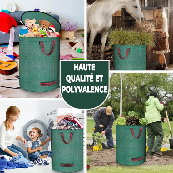 Sacs De Jardin 500 Litres 2x Sac De Jardin 170l Pop-up Sac à Déchets Avec Poignées Sac à Feuilles Sac Vegetaux Profitez d'une stabilité et d'une autonomie inégalées avec nos sacs à feuilles de jardin. Ces sacs offrent amplement d'espace pour tous vos déchets de jardin, rendant les sessions de nettoyage plus rapides et plus efficaces Dites bonjour à un entretien de jardin sans effort et récupérez dès aujourd'hui votre oasis extérieure ! Passez moins de temps à tâtonner avec des installations compliquées et plus de temps à faire ce que vous aimez RESTE DEBOUT MÊME VIDE : Fini les tracas des sacs qui basculent ! Que vous les déplaciez dans le jardin ou les vidiez dans votre bac à compost, nos sacs sont conçus pour votre plus grand confort Il suffit de déplier, Insérer la bande plastique, et vous êtes prêt à vous attaquer à votre travail de jardinage en un rien de temps ! Fabriqués à partir de matériaux PP de haute qualité, ces sacs à déchets de jardin sont conçus pour résister aux tâches les plus difficiles tout en maintenant leur structure solide et durable. Sacs à déchets de jardin 500L - 2Pack robuste étanche - Poignées renforcées - DtopbuyAge Dites adieu aux alternatives fragiles qui se déchirent facilement. Un pack de 2 sacs de jardin robustes avec une capacité de 500 litres chacun. Ils ont un diamètre de 80 cm (31,5 pouces) et une hauteur de 100 cm (39,3 pouces). Ces sacs réutilisables sont parfaits pour stocker de grandes quantités de déchets de jardin légers, réduisant ainsi le temps de transport. ???? ️[PLIABLE RÉSISTANT À LA DÉCHIRURE : Fabriqués à partir de matériaux PP de qualité supérieure, ces sac dechets verts sont conçus pour durer, garantissant qu'ils ne se déchireront pas facilement, même sous des charges lourdes. Avec une capacité impressionnante de 2*500 litres, nos sac de jardin dechet vert offrent amplement d'espace pour accueillir tous vos déchets de jardin, des feuilles tombées aux branches et aux Mauvaise herbe. INSTALLATION FACILE : Profitez d'une installation sans tracas avec notre conception conviviale. Rehaussez votre expérience de jardinage avec nos sacs à feuilles de jardin. Conçus pour votre plus grand confort, nos sacs à feuilles de jardin sont dotés de poignées solides qui rendent le transport et le versement sans effort. De plus, ils sont imperméables, assurant que vos déchets restent contenus sans fuites Sacs de jardin à partir de 2.99€. Sac pour déchets verts capacité 500L résistant et réutilisable, livraison express 24h disponible. Particuliers & Professionnels Il vous suffit de déplier le sac, d'insérer la bande plastique et vous êtes prêt à partir ! CAPACITÉ INÉGALÉE : Chaque sac jardinage dechets de la série a une capacité maximale de 500 litres, une hauteur de 100 cm et un diamètre de 80 cm.