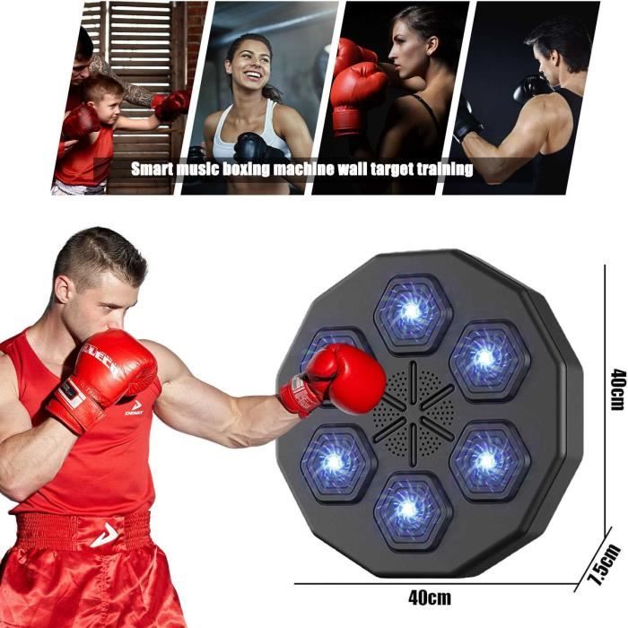 Sûr et Durable: Le Musical Boxing Machine est un appareil de boxe amusant et innovant qui combine cardio, force et réduction du stress mental. Un Appareil de Fitness pour Toute la Famille: La surface d'impact de cette machine de boxe est faite de mousse à haut rebond et peut supporter jusqu'à 200 livres d'impact. Machine De Boxe Musicale Enfant Et Adulte blue tooth, Boxe Mural Musique Fixation Mural Avec LED Dynamique Et Gants 9 Modes De 9 Vitesse, Boxing Machine blue tooth Smart Comptage Intelligent-Noir Les 9 modes de vitesse sont réglables à votre guise, il convient aux adultes et aux enfants, il est livré avec un kit de montage mural qui permet d'économiser 80 % d'espace et il convient aux salles de sport à domicile, aux appartements et à d'autres scénarios Vous pouvez l'utiliser pour travailler vos épaules, votre équilibre et votre coordination, ou comme échauffement avant l'entraînement. Les 10 meilleures machaine de boxe musicales Installation Facile et Gain de Place: Cette machine de boxe portable intelligente peut être montée sur le mur pour économiser de l'espace et du temps d'installation. Livré avec un velcro solide, adapté aux murs en carrelage / marbre / bois, 3 minutes pour compléter l'installation, cette machine de boxe intelligente est électrique, avec une batterie intégrée de 1500 mAh, qui dure de 2 à 4 heures sur une seule charge Entraînement Cardio Réaction Boxing Machine Murale Machine De Boxe Musicale, Boxeur Musical Mural For La Maison, Cible De Boxe Intelligente Électronique Bluetooth, Appareils D'entraînement De Boxe For Exercices Amusants En Plein Appareil Boxe LED 9 Vitesses Les gants de boxe fournis sont également très résistants et absorbent les chocs, avec un double rembourrage pour protéger les poignets et les articulations. Bluetooth Intelligent + Ecran LCD: Cet appareil de boxe avec fonction musicale prend en charge la connectivité Bluetooth pour diffuser de la musique et peut être synchronisé avec la bibliothèque musicale de votre téléphone portable ou de votre tablette, afin que vous puissiez vous immerger dans le rythme tout en vous balançant et en vous entraînant. 9 Vitesses et Modes: La machine de boxe musicale dispose de 9 modes et vitesses pour répondre aux besoins de la plupart des gens.