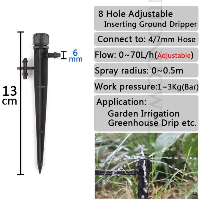 Tournez à gauche pour fermer, tournez à droite pour régler le débit d'eau. Quantité suffisante pour un usage quotidien et remplaçable à tout moment. Lot de 10 goutteurs en ligne GEOLIA | Leroy Merlin Arroseur réglable pour goutteur d'arrosage : convient pour tuyau ID de 4 mm. Débit : 0 à 70 l/h. Pression de travail Un système d'arrosage de précision fournit juste la bonne quantité d'eau lentement et exactement là où votre plante en a besoin, sur la zone racinaire. Aiperq Goutteurs d'irrigation, 100pcs Arroseurs d'arrosage réglables Si vous êtes en voyage d'affaires ou en voyage, ce produit peut arroser automatiquement votre plante tous les jours. Aidez à économiser des ressources, à gagner du temps, à économiser de l'argent et à économiser de l'eau Goutteur 4l/h 200 Goutteurs D'Irrigation RéGlables Kit D'Irrigation à Pour Jardin Micro-goutteurs 8 Trous Anti-blocage Réglable à 360 degrés : cet arroseur avec 8 trous de pulvérisation peut régler le débit d'eau ou régler l'arrosage par pulvérisation à 360 degrés, également pour interrompre le débit d'eau. Arroseur réglable pour goutteur d'arrosage : convient pour tuyau ID de 4 mm., Débit : 0 à 70 l/h. Pression de travail : 2-4 kg.