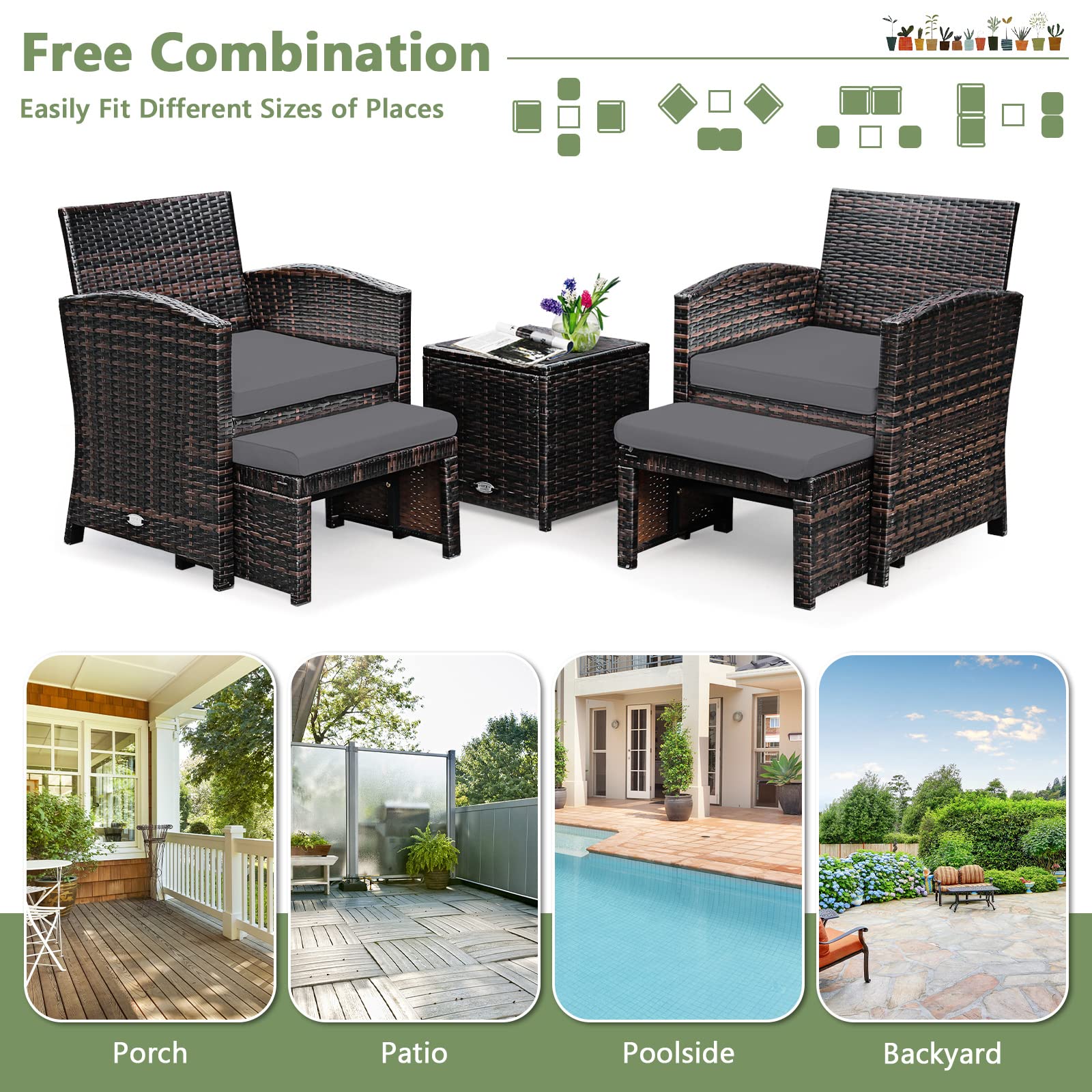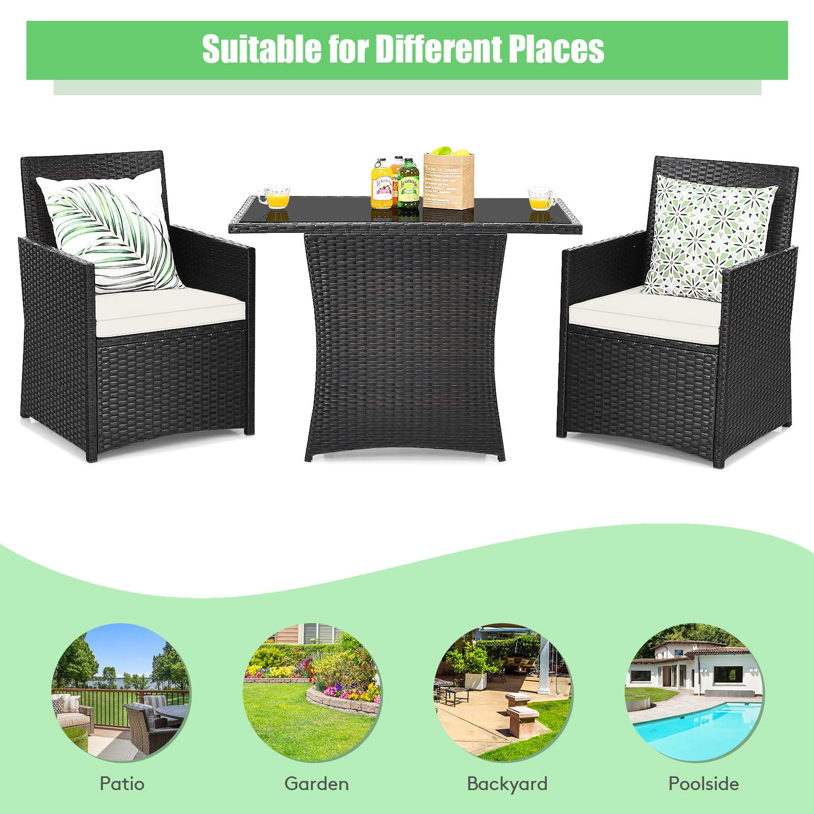 🍀 Confort : grâce aux accoudoirs, au dossier inclinable et aux coussins doux, vous pourrez vous détendre pendant votre temps libre. 🍀 Matériau : ce salon de jardin avec canapé est fabriqué en rotin résistant aux intempéries, facile à nettoyer et avec une table en verre trempé. 🍀Polyvalence : cet ensemble de meubles de jardin est assez grand pour accueillir 2 personnes et offre beaucoup d'espace pour les couples de famille et amis pour se reposer et se détendre. 10 Pièces Ensemble Salon De Jardin Extérieur En Polyrotin Avec Fauteuil Table Basse 3 Tabourets 🍀 Dimensions : 2 fauteuils : 56 x 66 x 85,5 cm, table basse : 104 x 63 x 72 cm. KOMFOTTEU Ensemble de Salon de Jardin en Rotin, 3 Pièces pour 2 Personnes, Meubles de Jardin avec Coussins, Mobilier d'Extérieur avec 2 Fauteuils & 1 Table Basse, pour Terrasse, Balcon (Blanc) : : JardinÀ propos de cet article 🍀 ENSEMBLE DE MEUBLE 3 PIÈCES Fauteuil Rotin Meuble Balcon KOMFOTTEU Ensemble De Meubles De Jardin 4 Pièces Pour 4 Personnes, 2 Chaises, 1 Banc Et 1 Table Basse, Meubles De Terrasse Pour Balcon, Cour, Piscine Table Rotin Table De Jardin Exterieur Avec Chaise Profitez de soirées conviviales et agréables sur votre terrasse en y installant un salon de jardin en rotin. Conçu dans un matériau naturel, ce mobilier apporte une touche authentique à votre terrasse ou votre jardin