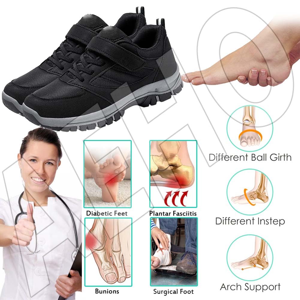 Languette et col rembourrés en mousse souple. Chaussures pour pieds enflés : les meilleurs s de 2020 Chaussures de santé extra larges, spécialement conçues pour les personnes âgées, les personnes âgées, les diabétiques, les blessés aux pieds et les personnes souffrant d'inconvénients. Chaussons parfaits pour les personnes âgées ayant des problèmes d'œdème, pieds gonflés diabétiques. [Boucle réglable portable] - Le bouton magique réglable offre un espace pour ajuster le gonflement du pied. [Conception extra large] - La conception extra profonde et la zone des orteils larges empêchent la pression sur les oignons et les orteils en marteau. La doublure intérieure douce sans couture rembourrée de mousse élimine les points de pression et offre un confort et une protection supérieurs pour les pieds sensibles et pour les diabétiques, l'arthrite. Tissu respirant et léger] - La tige extensible, respirante et légère soulève les pieds au frais et au sec. · [Semelle antidérapante] - Semelle extérieure en... Un excellent cadeau pour papa, grand-père, les personnes âgées, les diabétiques et les patients. Chaussures pour diabétiques CHUT AQUITAINE noir Velcro Réglable Pied Gonflé GNbow Chaussures Pour Diabétiques Pour Hommes, Chaussures Pour œdèmes Chaussures Pieds Enflés Larges [Semelle antidérapante] - Semelle extérieure en caoutchouc très durable et flexible et semelle intercalaire légère. Caractéristiques des chaussures diabétiques pour pieds enflés :1., Les chaussures pour diabétiques combinent douceur et style avec les derniers matériaux légers. 2,3 paires de semelles intérieures avec plusieurs couches de rembourrage offrent un soutien qui fait des merveilles pour améliorer le confort et réduire la douleur., 3., Le corps de la chaussure avec velcro peut ajuster automatiquement la taille et la largeur, de sorte que le pied puisse atteindre une position confortable., 4., Léger, portable, pratique, peut être utilisé à l'intérieur et à l'extérieur, réduisant ainsi le fardeau des personnes âgées. Les pieds procurent une sensation de confort., 5., Machine ou lavable à la main, entretien facile, ultra léger. [Tissu respirant et léger] - La tige extensible, respirante et légère soulève les pieds au frais et au sec.