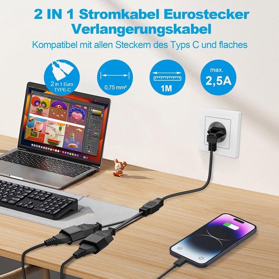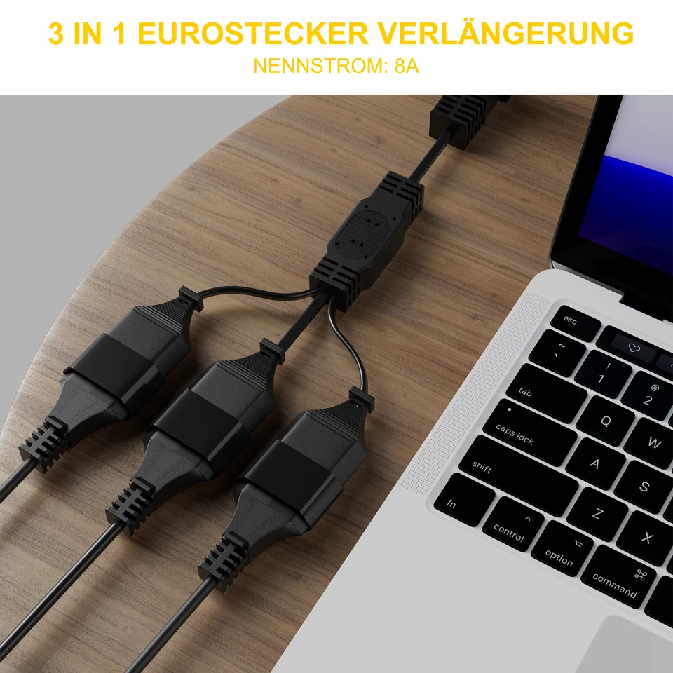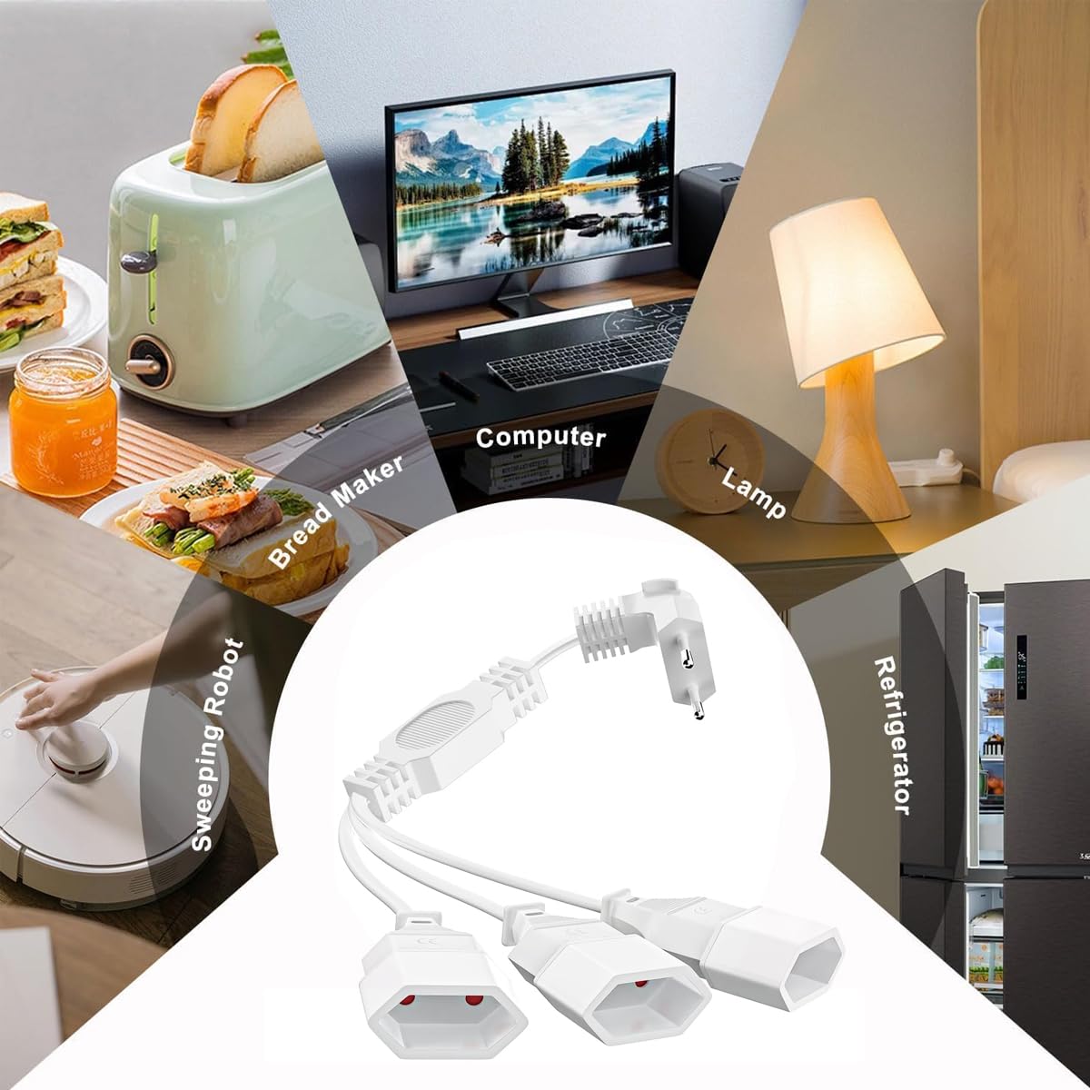 Les fonctions de protection intégrées, telles que la protection contre les surtensions, surintensités et courts-circuits, assurent une sécurité maximale. Achetez Câble d'Extension 3 en 1 avec Fiche Plate 0,5 m, Prise Européenne vers Double Prise Euro Type-C, Câble d'Alimentation Plat à 90°, 250V/2,5A, Rallonge Électrique pour PC Ordinateur TV Moniteur, Noir Ce câble prolongateur 3-en-1 avec prise Euro Type-C est la solution idéale lorsque seules quelques prises sont disponibles. Grâce à sa fabrication de haute qualité, la conductivité reste stable même en cas de mouvement ou d’utilisation fréquente. 【Robuste et durable】Le câble flexible est résistant à la flexion, solide et conçu pour une utilisation à long terme. 【Large utilisation】Que ce soit dans la cuisine, le salon, la chambre ou le bureau, ce câble prolongateur compact est pratique partout. Idéal également pour les voyages ou les vacances pour alimenter plusieurs appareils simultanément. KONYEN Rallonge électrique 3 en 1 avec fiche plate 0,28 - Double... Avec un câble compact de 50 cm, vous pouvez transformer une seule prise en trois et ainsi alimenter jusqu’à trois appareils simultanément – que ce soit un téléviseur, un ordinateur, des lampes, des chargeurs ou de petits appareils électroménagers. Rallonge électrique 2 Mètres Lot De 2 Rallonges D'alimentation, Rallonge 2 En 1, Fiche Type C, Fiche Euro Vers Prise Euro, 0,75 Mm² Max. 6A/250V Pour TV PC Moniteur D'ordinateur Appareils électroménagers Adaptateur Prise Multiple USB-C Yivom Rallonge Prise Euro, Câble D'extension 3 En 1 Européenne, Câble Rallonge D'alimentation Euro 250 V 2,5 A Pour TV, PC, Moniteur, Lampe, Usage Domestique(Blanc Rallonge 1m Chaque prise est également équipée d’une protection enfant. Le câble est fabriqué en PVC de haute qualité, ignifuge, et équipé de conducteurs en cuivre robustes, assurant une alimentation électrique fiable. Le câble court est particulièrement pratique, évitant les enchevêtrements inutiles et s’adaptant parfaitement aux petits espaces. La puissance maximale totale est de 1000W, tension 250V, intensité 2,5A. 【Sûr et fiable】Fabriqué en PVC robuste et ignifuge avec conducteurs en cuivre (2x0,75mm²) pour une alimentation électrique stable.