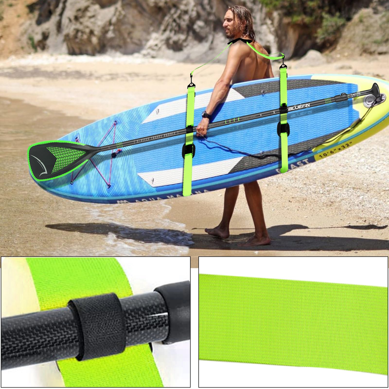 Cela répartit les points de pression et soulage les épaules. Contenu : 1 sangle de transport pour planche de surf., Remarque : 1., En raison des mesures manuelles, les résultats de mesure peuvent différer de la sangle d'épaule pour les planches de surf. Merci de votre compréhension., 2., Le rayonnement UV à long terme accélère le vieillissement des accessoires de planche SUP. 💖[Épaulettes épaissies] : la sangle de transport pour planche de surf est équipée d'épaules élargies et épaissies pour améliorer le confort et éviter de glisser. Sangle De Transport Réglable Pour Planche De Paddle, Sangle D'Épaule Matériau : nylon + plastique technique Bandoulière : 5 cm x 140 cm Sangle : 5 cm x 220 cm Épaulettes : 8,5 cm x 21 cm. La sangle de transport SUP convient à toutes les morphologies et est très flexible et pratique La bandoulière pour planche de surf peut être installée et retirée rapidement et sans nœuds. Les deux extrémités se trouvent des boucles pour une installation et un retrait rapides. 🎈[Longueur réglable] : la longueur de la sangle d'épaule pour planche de surf peut être ajustée en fonction de la taille de la planche de surf pour mieux la fixer. Sangles porte planche de Surf Madness Le crochet de la sangle d'épaule pour planche de surf est fabriqué en plastique technique de haute qualité, léger et incassable, offrant une protection fiable Après le montage sur la planche de surf, vous pouvez simplement accrocher les accessoires de planche SUP sur l'épaule et avoir les mains libres et le porter confortablement Barre de toit et sangle surf Accessoires Transport Surf Si la pratique du surf vous offre des sensations uniques de glisse sur l'eau, il n'est pas toujours facile de transporter votre planche pour découvrir de nouveaux spots Grâce à son design compact, il se range facilement lorsqu'il n'est pas utilisé. Il est durable et résistant. Veuillez rincer et sécher à temps après utilisation avec de l'eau claire pour éviter la formation de moisissures. Facile à utiliser : la sangle de transport SUP est très facile à manipuler. Accessoire Sport Nautique Kayak Sangle Transport Paddle Golgner Sangle De Transport Pour Planche De Surf, Planche De Attache Paddle Bandoulière Réglable SUP Kayak La sangle de transport SUP est réglable en longueur et peut donc être adaptée à vos besoins et à vos morphologies. La sangle de transport pour planche de surf est compatible avec les SUP, les kayaks, les planches de paddle, les planches de surf et les longboards. La bandoulière pour planche de surf dispose d'un rembourrage d'épaule renforcé. La sangle de transport pour planche de surf se replie à tout moment lorsqu'elle n'est pas utilisée et prend peu de place.