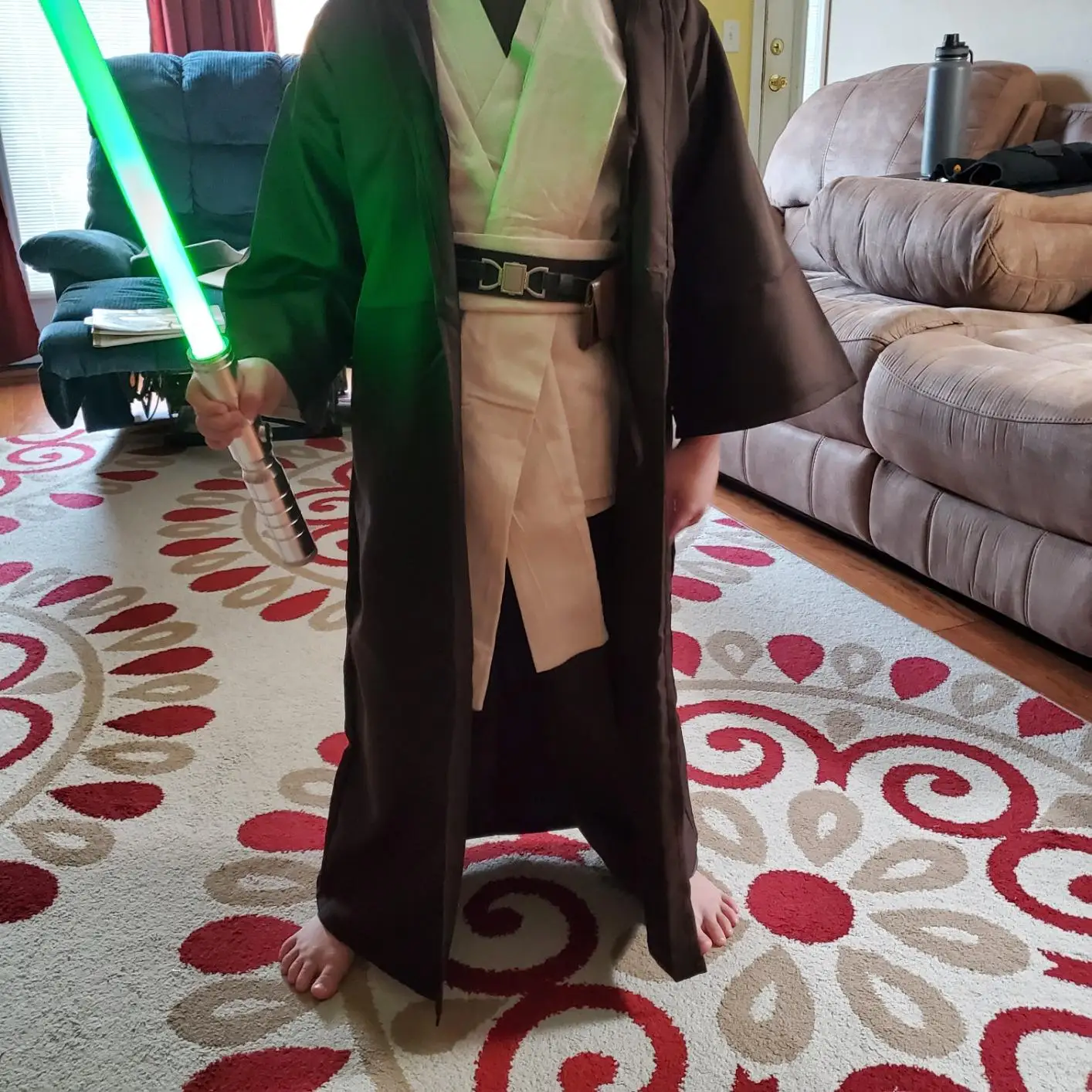 Enfant Obi Wan Kenobi Jedi Halloween Cosplay Costume Détails techniques Matière : Polyester Comprend : 1 ensemble d'uniforme de chevalier Jedi, 1 sabre laser bleu Avertissement De Sûreté Non Vêtement Cosplay Halloween Garçon Fille Crazycos Jeidi Costume Skywalker Pour Enfant, Robe à Capuche, Tunique, Pantalon, Ceinture, Costume D'Halloween, Jeu De Rôle, Fête à Thème, Carnaval (taille L Déguisement Jedi Sabre Laser Bleu ---Cette robe Jedi de haute qualité est fabriquée à partir d'un mélange de polyester doux pour plus d'authenticité et de confort. ★Accessoire polyvalent - la capuche de la robe Jedi peut être portée séparément pour recréer des duels de sabre laser dramatiques ou des rituels Jedi mystérieux ★Idéal pour les événements - Parfait pour Halloween, le carnaval, les soirées à thème Star Wars, les pièces de théâtre scolaires ou comme ajout à votre collection de costumes Ce déguisement est spécialement conçu pour les jeunes fans de Star Wars qui rêvent d'incarner les puissants Jedi. Inspiré des tenues emblématiques des Jedi, ce costume permettra à votre enfant de se plonger dans l'univers épique de Star Wars et de vivre des aventures galactiques Star Wars Lightsaber Forge Dark Vador contre Obi-Wan Kenobi, sabres laser rouge et bleu Les liens dissimulés à la taille permettent un ajustement personnel facile, et le look pratique à enfiler assure un enfilage et un retrait rapides - parfait pour les séances de jeux de rôle intenses ou le cosplay spontané. ★ MATÉRIAU DE HAUTE QUALITÉ - Les robes Jedi sont fabriquées dans un mélange de polyester doux et respirant, offrant un confort pendant des heures de fêtes d'Halloween ou d'événements à thème ---Les costumes de chevalier Jedi pour enfants sont disponibles en trois tailles : S-L.
