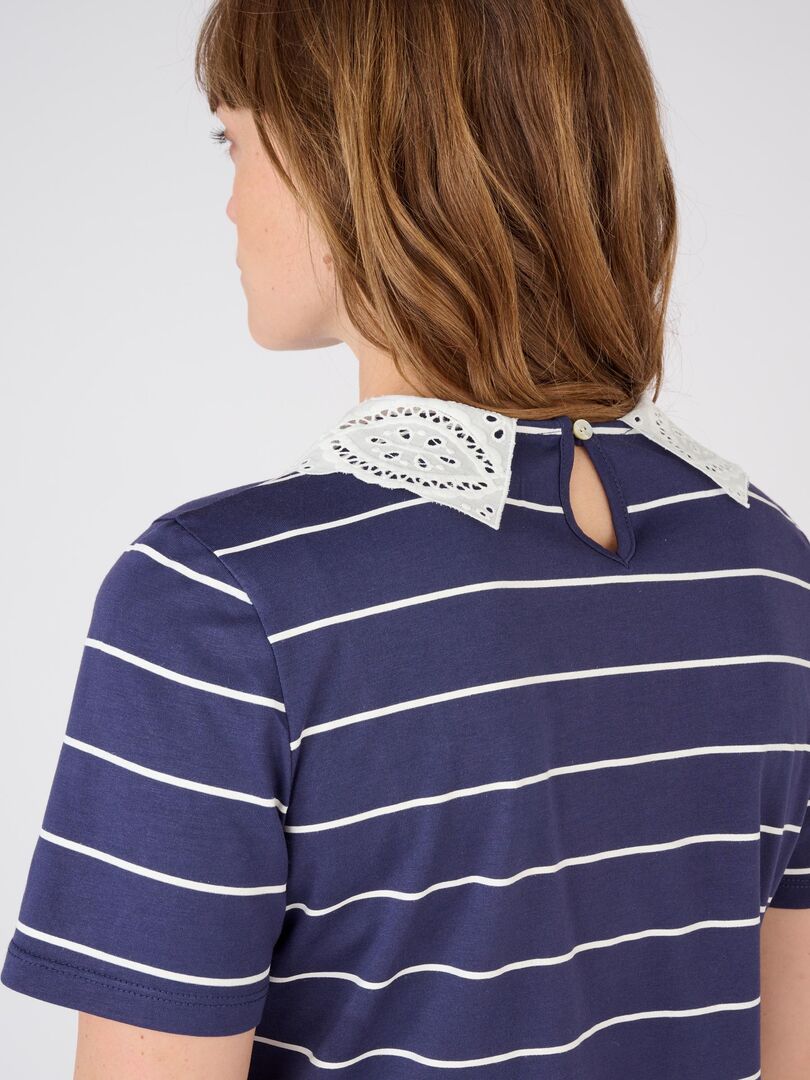 Tailles : Ce produit existe de la taille 34/36 à la taille 54/56., Couleurs : Ce produit existe en Blanc, Bleu, Rose. Damart AVEC BRODERIES ANGLAISES MANCHES COURTES - T-shirt print - blanc T-shirt bi-matière broderie anglaise - T Shirt Facile à porter et à associer, il devient un incontournable du dressing estival. Ses manches courtes non rapportées, sublimées par un jeu de jours échelles et des revers délicats, ajoutent une touche de féminité. Ce t-shirt bi-matière allie l'élégance de la broderie anglaise en coton mélangé sur le devant à la douceur d'un dos en maille jersey pur coton. Ses manches courtes non rapportées, sublimées par un jeu de jours échelles et des revers délicats, ajoutent une touche de féminité La marque : Riche de son histoire et de son expérience, Damart se réinvente autour de ses fondamentaux : Innovation, Considération, Liberté et Plaisir, pour être toujours plus proche de ses clients. Ce t-shirt bi-matière allie l'élégance de la broderie anglaise en coton mélangé sur le devant à la douceur d'un dos en maille jersey pur coton. T-shirt Manches Courtes Jours échelle T-shirt Coton Manches Broderie Anglaise Blanc Femme | La Halle T-shirt Femme Broderie Anglaise Damart