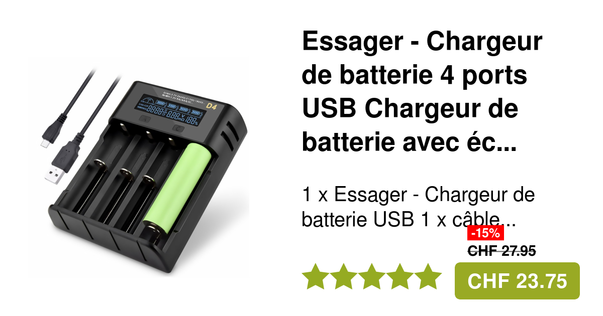 Chargement rapide : charge complète une batterie 18650 (par exemple, Sy VTC5, Sam 30Q, LG HG2) en seulement 3 heures à 1 A, compacte mais puissante. ✅ Large compatibilité – Le XTAR MC1 Plus est un chargeur de batterie Li-ion 3,6 V/3,7 V conçu pour les batteries 10440, 14500, 16340, 18350, 18650, 20700, 21700, 25500, 26650, ce qui en fait un chargeur lithium-ion universel. Activation 0 V et récupération de décharge excessive : ravive en toute sécurité les batteries mortes ou déchargées, ce qui vous permet d'économiser de l'argent sur les remplacements. Xtar ANT MC1 Plus - Mini Chargeur nouvelle version USB 1000 mA Li-Ion Ecran Port de charge USB-C : fonctionne avec les adaptateurs USB-C, les banques d'alimentation, les ordinateurs portables et les chargeurs de voiture pour une charge en déplacement. Achetez XTAR MC1 Plus Chargeur de batterie USB-C pour batteries Li-ion 18650, 21700, 26650, 14500, 18350 - Chargeur LCD intelligent 0,5 A/1 A avec activation 0 V, récupération de décharge excessive, charge Chargeur Accu 18650 XTAR MC1 Plus USB-C Battery Charger For 18650, 21700, 26650, 14500, 18350 Li -ion Batteries – Smart 0.5A/1A LCD Charger With 0V Activation, Over-Discharge Recovery, Fast USB-C Charging Chargeur USB-C Intelligent 18650 Chargeur d'accus MC2 par Xtar – Matériel de rechargement d'accus – A&L