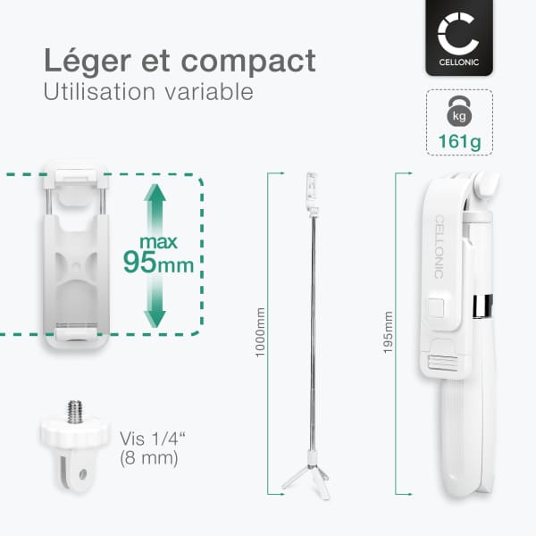 Idéale pour les voyages, les selfies spontanés ou les vidéos sur le vif, cette perche à selfie portable de poche combine praticité et élégance pour capturer vos plus beaux moments Grâce à sa structure télescopique robuste, la perche à selfie extensible s’étend jusqu’à 72 cm, offrant un champ large pour capturer des selfies, photos de groupe ou vidéos sans effort. ) grâce à sa pince ajustable et antidérapante. Pratique pour les vlogs, photos de groupe ou enregistrements mains libres Elle est compatible avec la plupart des téléphones (iPhone, Samsung, Huawei, Xiaomi, etc. Mini perche à selfie rotative à 360 degrés pour voyage, téléphone Profitez d’une liberté totale pour vos vidéos TikTok, YouTube ou Reels, avec cette perche à selfie portable extensible compatible avec tous les smartphones Télécommande Bluetooth intégrée pour des prises nettes: Cette perche à selfie portable de poche est équipée d’une télécommande Bluetooth amovible (portée jusqu’à 10 m) pour déclencher vos photos ou vidéos sans toucher le téléphone. Léger et format de poche : le mini trépied Pocket Flex pour iPhone ne pèse que 132 g et se replie à la taille de votre paume, cette perche à selfie compacte est incroyablement légère, elle réduit le poids de votre sac à dos et prend un minimum de place pour la photographie de voyage Perche Telescopique Portable Benro - Mini Trépied Extensible Portable MK10, Perche à Selfie Avec Télécommande, Tout Neuf Accessoire Selfie Compact Compacte, stable et polyvalente, cette mini perche à selfie vous permet de capturer chaque moment avec style. Son support de téléphone rotatif à 360° permet des prises horizontales et verticales, garantissant des images stables sous n’importe quel angle. Portable Rétractable En Aluminium Avec Télécommande Sans Fil Pour Iphone/Samsung/Android/Caméra. Neuf dès 25,82 Vous pouvez déclencher vos prises de vue à distance, idéal pour les créateurs de contenu, vloggers ou amateurs de live streaming. Structure télescopique réglable pour toutes les situations: Cette perche à selfie extensible peut s’étendre de 12 à 72 cm, vous permettant de choisir la longueur idéale pour des selfies individuels ou des photos de groupe. Avec seulement 12 cm de longueur une fois pliée, elle se range facilement dans la poche et devient votre compagnon idéal pour les voyages, festivals, événements ou simples sorties entre amis. Conçue pour durer et vous accompagner partout