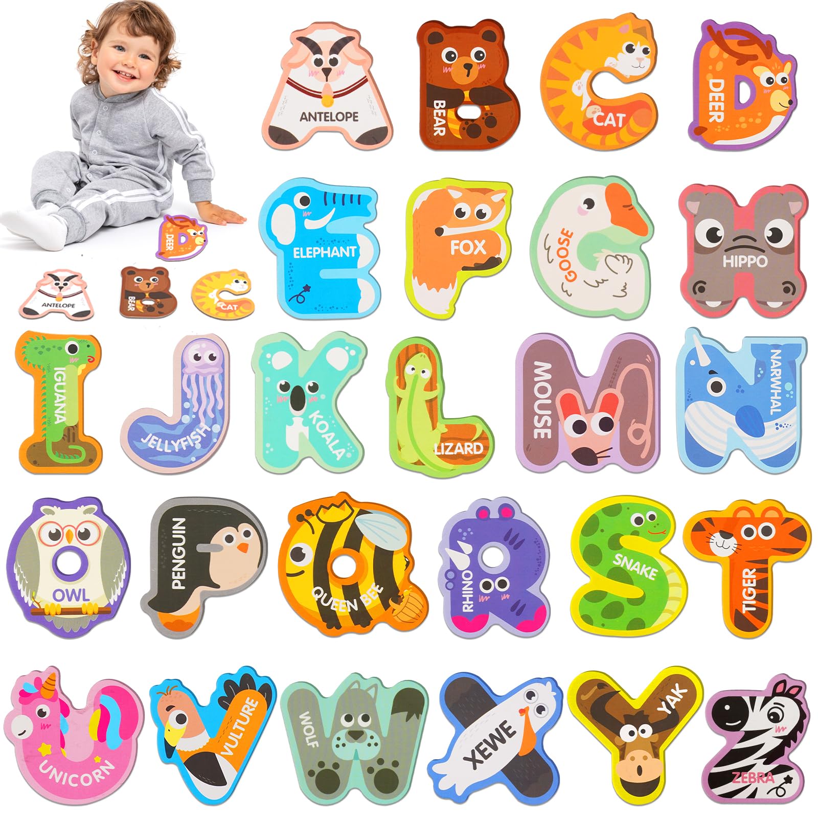 Les enfants seront heureux de jouer avec cela pendant le voyage, de l'emmener à l'école pour le partager avec leurs amis ou les enfants peuvent mettre ces lettres d'animaux sur le réfrigérateur lorsque les parents sont occupés dans la cuisine. Chaque pièce est dotée d'un aimant complet, ce qui lui permet de coller solidement à toute surface magnétique, telle qu'un réfrigérateur, un tableau blanc ou un tableau magnétique. Éducatif et interactif : ce lot de 52 aimants de réfrigérateur comprend 26 aimants colorés en forme d'animaux et 26 lettres majuscules assorties 9 AIMANTS BOIS À COLORIER ANIMAUX Meilleurs Cadeaux : Il offre une excellente occasion de créer des liens familiaux. Lettres magnétiques en bois - 26 pièces - Éducation enfant - Aimant Les parents peuvent se joindre à l'amusement, en aidant leurs enfants à épeler des mots et à participer à des jeux éducatifs. Ce jeu interactif favorise les compétences en communication, renforce les relations familiales et encourage l'amour de l'apprentissage qui dure toute une vie. Lettres Magnétiques Bois Magnet Frigo Montessori Lettres Magnu00e9tiques Avec Motifs Animaux 26 Aimants ABC Pour Les Enfants Lettre Magnetique Magnette Enfant Pratique à Utiliser : Le jouet alphabet est pratique et léger, sa portabilité offre des possibilités d'apprendre partout. Cette approche ludique aide les enfants à associer les lettres aux sons et aux mots, jetant ainsi des bases solides pour les compétences précoces en lecture et en écriture. Les bords lisses et sans bavures assurent la sécurité des petites mains.