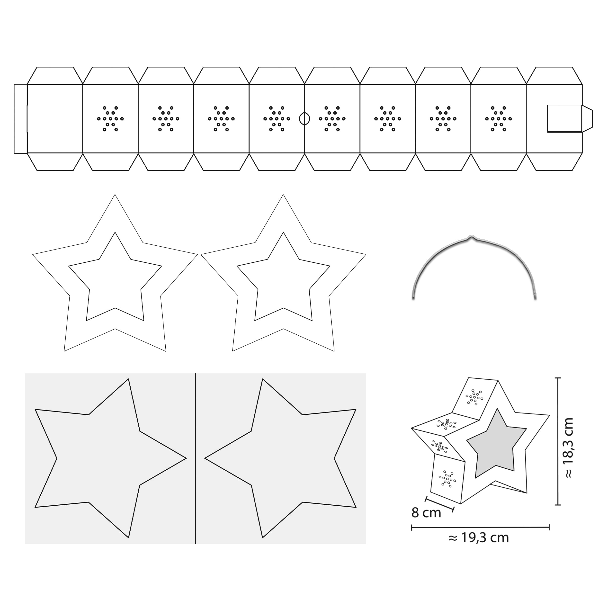 URSUS Soleil, Lune et étoiles » -Dimensions Environ 14 x 20 cm, kit Complet avec Lanterne, Anse de Transport, Papier Transparent en 7 Couleurs et Instructions de Bricolage, coloré Lanterne Twinkle Star Blanc Twinkle Star, Ciel étoilé, Env. Lanternes - 19,3 X 18,3 X 8 Cm - Étoile Brute En Carton Photo 300 G/m² - Laser Et Rainuré - 2 étoiles En Papier Transparent 115 G/m², Coloré Papier Cartonné Blanc Papier cartonné 300 g/m² Description du produit Que ce soit comme lanterne ou comme lumière décorative pour votre maison, vous décidez. Des instructions de bricolage sont également fournies (français non garanti). Petits prix et livraison gratuite dès 25 euros d'achat sur les produits Ursus. Commandez Ursus Twinkle Star, blanc, env. 19,3 x 18,3 x 8 cm, vierge en carton photo 300 g/m² découpé au laser et rainuré, 2 étoiles en papier transparent 115 g/m², support pour lanterne, 19,3 x 18,3 cm Avertissement De Sûreté Aucun avertissement Couleur de l'étoile scintillante : jaune · Dimensions approximatives : 19,3 x 18,3 x 8 cm · Contenu de la livraison Twinkle Star - Couleur : blanc Avec le set Star de twinkle vous recevrez une lanterne étoile FK 300 g/m², 2 découpes en papier transparent 115 g/m² et un arceau de lanterne.