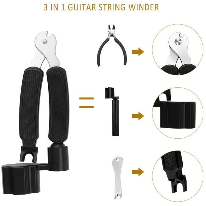 Outil De Réglage De Guitare 3 En 1, Accessoires D'instruments à Cordes, Extracteur De Broches De Coupe De Cordes, Enrouleur De Guitare, Dissolvant De Pince à Cordes Entraineur De Cordes De Guitare Enrouleurs De Corde Pour Guitare 3 En 1 Outil De Guitare, Pince Coupante, Coupe-Corde Et Extracteur E Broches De Pont, Manivelle Pour Guitare, Outil Instruments à Cordes 【Large application】 Il peut être utilisé pour tous les instruments à cordes comme les guitares, les banjos, les guitares acoustiques, les mandolines, les ukulélés, les basses, etc. Contenu du colis : 1 coupe-guitare. 【Portable】 L'enrouleur de cordes de guitare ne pèse que 33 grammes et la longueur totale de l'outil est de 11,5 cm. Enrouleur et coupe-cordes de guitare 3 en 1 - Extracteur de broches multifonction - Noir - Outil de réglage de réparation de guitare - Enrouleur de cordes pour ukulélé, mandoline, banjo 4,3 (11) 590$ Ancien 【Conception 3 en 1】 Cet outil pour guitare intègre trois fonctions d'enrouleur, de limon et d'extracteur d'aiguille, ce qui est pratique et rapide à utiliser. Cet outil réunit en une seule pièce l'enrouleur, le coupe-corde et l'extracteur de broches, pour des changements de corde plus rapides et propres. Il s'adapte à toutes les guitares et même à la basse, et il se range sans encombre dans l'étui ou le sac de scène 【Facile à utiliser】 Utilisez l'enrouleur de chevilles et le dissolvant de goupilles de pont pour changer rapidement la corde et ajuster le serrage. 【Qualité Premium】 L'enrouleur de cordes de guitare est composé d'une poignée en ABS de haute qualité et d'acier inoxydable robuste, léger et facile à transporter.