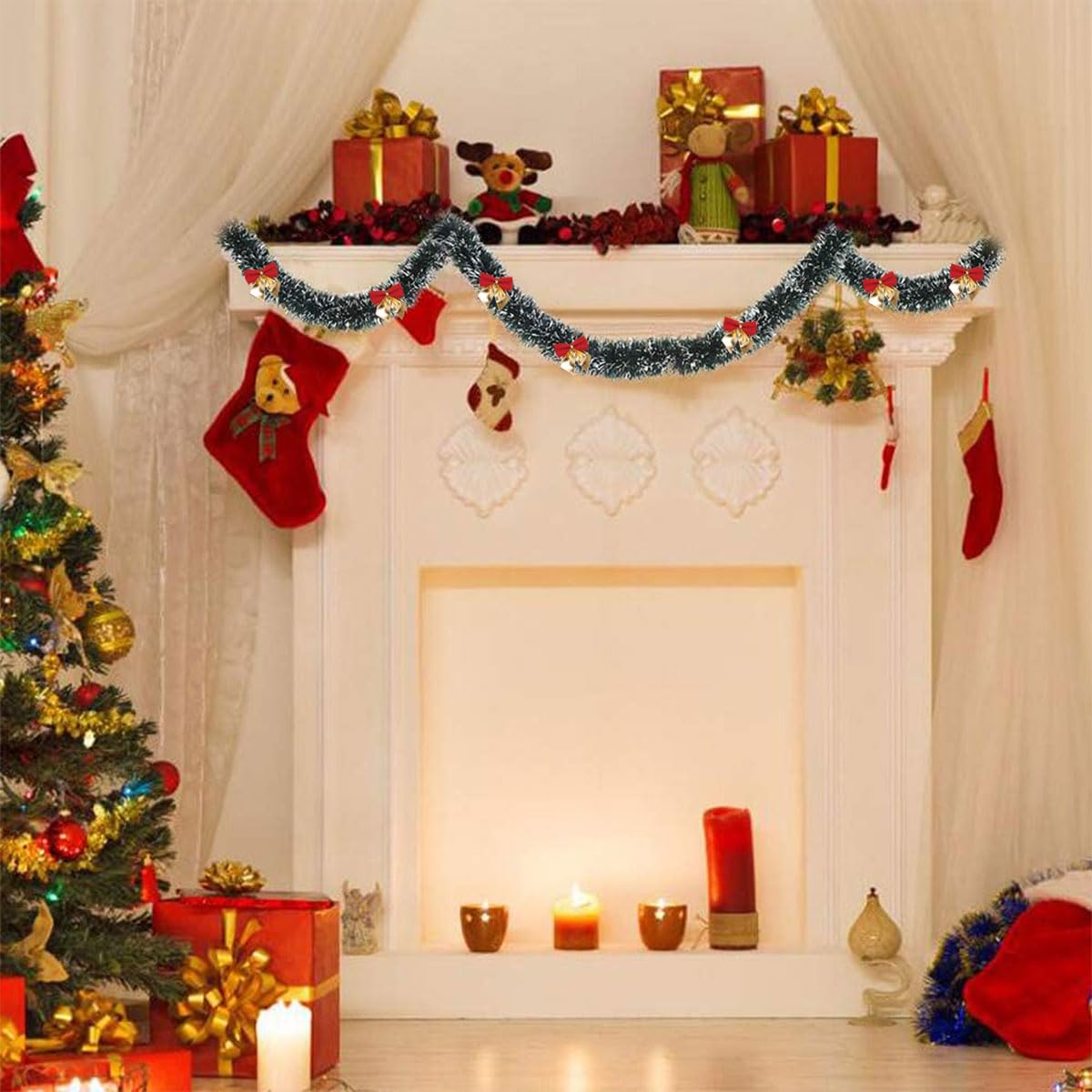 30 nœuds rouges et dorés (6 par paquet, 5 paquets) Avertissement De Sûreté Tenir à l'écart des flammes nues et des sources de chaleur. Les guirlandes vert foncé créent un aspect luxuriant et enneigé, ajoutant une ambiance magique d'hiver à votre décoration de vacances. Notre ensemble de décoration complet vous assure d'avoir tout ce dont vous avez besoin pour un événement réussi et mémorable. Facile à façonner et à accrocher : avec un fil doux à l'intérieur, la guirlande épaisse peut être facilement formée dans n'importe quelle forme, ce qui la rend parfaite pour la décoration de bricolage. Combinez-le avec des serpentins et des ballons vert olive pour de superbes centres de table et présentoirs qui impressionneront vos invités. Sapin de Noël artificiel effet givré avec décorations 120 cm vert DENALI Ce produit contient de petites pièces qui peuvent présenter un risque d'étouffement. Ensemble complet de décoration de vacances : comprend 5 ensembles de guirlandes de 200 cm de long x 9 cm de large avec franges en aluminium de qualité supérieure, plus 30 nœuds rouges et dorés (6 par paquet, 5 paquets) pour améliorer votre décoration festive. Détaile du Produit ✦ 5000 pièces guirlandes de mèches en forme de stalactites, emballées d'une enveloppe blanc. Chaque guirlande mesure 50 cm de long et 1,5... Guirlande de sapin de Noël vert givré avec pointe givrée - Serpentins métalliques enneigés - Guirlande verte et blanche pour célébrer une fête de vacances au plafond - Décoration d'intérieur et d'extérieur Contenu du paquet : Lot de 5 guirlandes de 200 cm de long x 9 cm de large avec franges en aluminium de qualité supérieure. Avec une frange en aluminium de qualité supérieure, cette guirlande est conçue pour durer pendant plusieurs saisons, à la fois à l'intérieur et à l'extérieur. Ensemble complet de décoration de vacances : comprend 5 ensembles de guirlandes de 200 cm de long x 9 cm de large avec franges en aluminium de qualité supérieure, plus 30 nœuds rouges et dorés (6 par paquet, 5 paquets) pour améliorer votre décoration festive Parfaite pour une variété d'événements, notre guirlande est polyvalente et facile à utiliser. Tenir hors de portée des enfants. Cette guirlande festive est parfaite pour décorer les arbres de Noël, les cheminées, les escaliers, les portes, etc. L'ajout de nœuds rouges et dorés ajoute une touche festive qui peut être attachée sans couture.