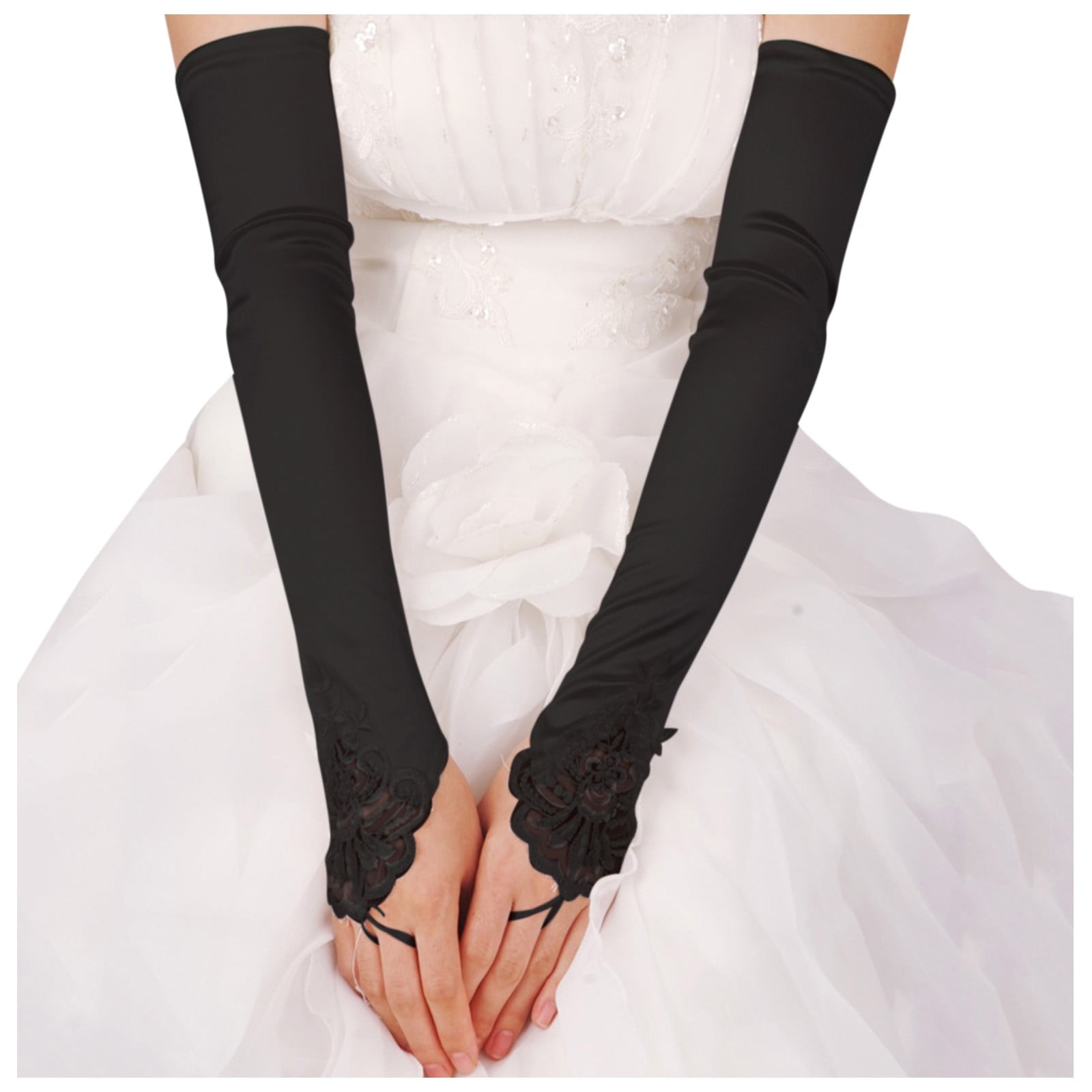Champ d'application : les gants d'opéra vintage sont le choix parfait pour les occasions formelles ou informelles telles que mariage, fiançailles, bal de fin d'année, soirée à thème, opéra, photographie, église, anniversaire, etc. Matériau de qualité supérieure : nos gants en satin sont fabriqués en satin extensible de haute qualité, confortables à porter, durables et faciles à laver. Conception sans doigts : les longs gants sans doigts sont reliés à l'anneau du majeur, ce qui n'étrangle pas le majeur, permettant ainsi à vos doigts de lire et de guider sans entrave Andiker Gants de soirée longs en satin, 53,3 cm, coude d'opéra pour Informations sur la taille : les gants de mariage mesurent environ 48 cm du bout des doigts jusqu'au bout du gant, s'adaptent à la plupart des mains des femmes, confortables à porter, excellent cadeau pour les mariées, les demoiselles d'honneur et autres demoiselles d'honneur. TRIXES Longs Gants Noirs Passe-Coudes Satin Pour Femmes Habillement de Soirée Fête Doigt ... Doigts Longs Noirs Gants Percés Gants de Satin, Gant Long, Gant Satin Gants Longs Mariage Noir Gants Longs En Satin Sous Le Coude Pour Femmes | Dents Gants Soirée élégants Vintage Ces gants longs en satin noir sont le choix parfait pour ajouter une touche de sophistication et d'élégance à votre tenue de soirée. Avec une longueur de 43 cm, ils couvrent presque tout l'avant-bras, s'arrêtant juste avant le coude pour un effet glamour et chic. Fabriqués à partir de satin doux et soyeux, ces gants offrent une sensation de confort et de luxe sur la peau, ainsi qu'un...