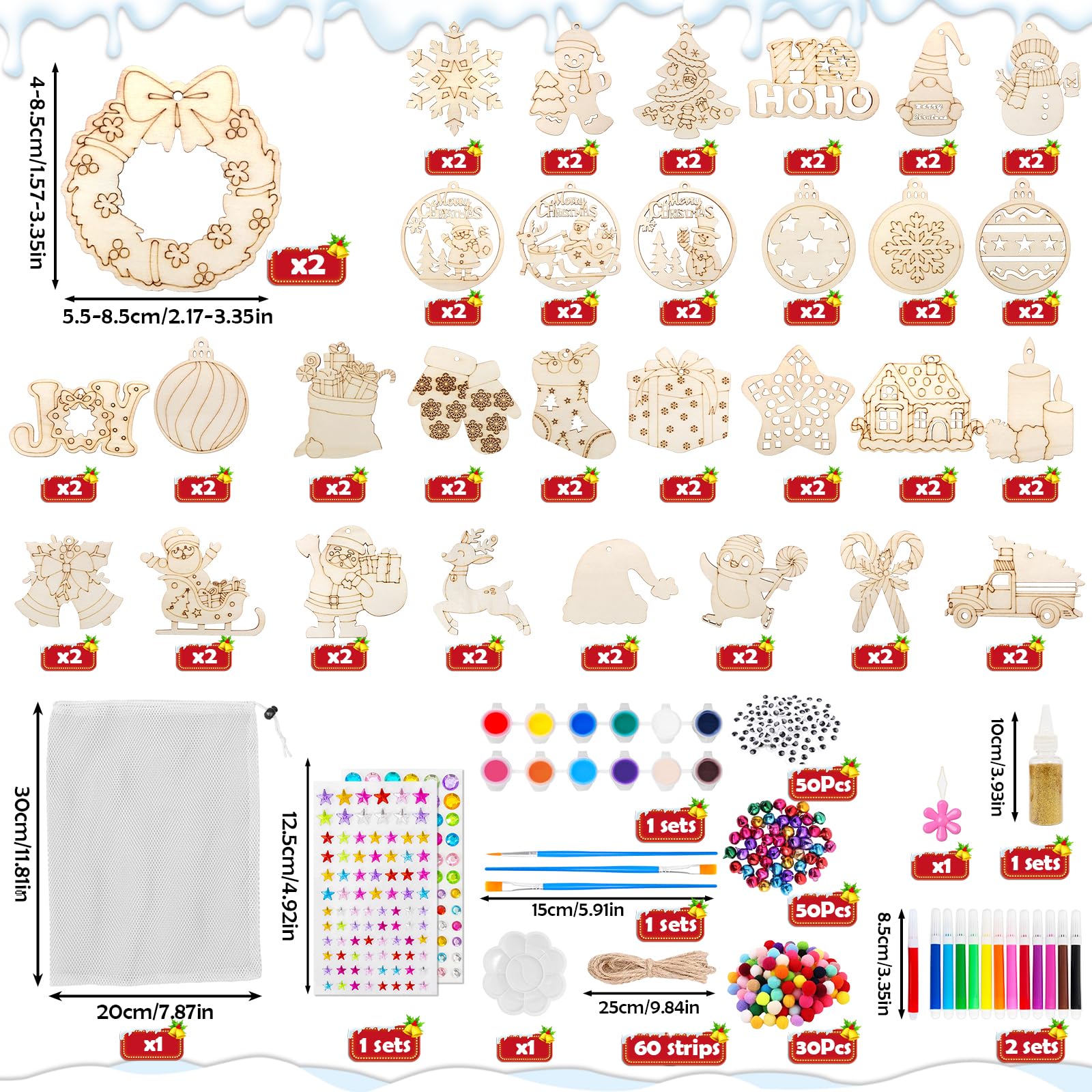 Parfait pour les projets de bricolage, la création de décorations de sapin de Noël, de manteaux de cheminée, d’étiquettes cadeaux, de loisirs créatifs pour l’école de Noël et bien plus encore, pour créer des décorations uniques qui répandent la joie des fêtes. Les parties en bois sont peintes avec des motifs classiques de Noël tels que des arbres de Noël, des boules de Noël, des flocons de neige, des orignaux, des bonhommes de neige et plus encore Kit de bricolage de Noël de 294 pièces : Vous recevrez 60 pendentifs en bois bruts (30 formes), 60 ficelles, 1 poudre d’or, 30 pompons, 2 feuilles d’autocollants strass, 50 autocollants œil, 50 grelots, 1 enfile-aiguille, 24 crayons aquarelle, 2 pinceaux, 12 peintures et 1 palette. Chaque pendentif de Noël est percé d’un petit trou et est fourni avec une ficelle pour une suspension facile. Créez une ambiance festive pour vos fêtes de Noël. Vous pouvez utiliser ces décorations en bois sur votre sapin de Noël, vos murs, vos portes et fenêtres, vos manteaux de cheminée, vos escaliers et bien plus encore. Parfait pour peindre, décorer et personnaliser votre sapin. Lot de 298 pendentifs de Noël en bois à peindre - 30 types de bricolage - 2 décorations de Noël pour enfants - Décoration de Noël en bois pour enfants Créativité illimitée : Ces décorations de Noël à suspendre sont vierges, ce qui vous permet de les embellir avec une variété de peintures, de paillettes, de strass et d’accessoires. Ces pièces en bois représentent des éléments classiques de Noël : sapins, boules, flocons de neige, cloches, élans, bonhommes de neige, et bien plus encore. Vous pouvez les gribouiller, dessiner, écrire, colorier ou les teindre pour créer vos propres créations personnalisées. Décorations de noël pour la maison, pendentifs décoratifs créatifs en... Pendentifs Noël Bois 1pc Décoration Noël Petit Pendentif En Bois En Forme D'arbre - Temu France Activité Manuelle Noël Les bords et les côtés sont poncés, et la surface gravée sur deux faces permet de les peindre, ajoutant une touche de vie à la décoration.