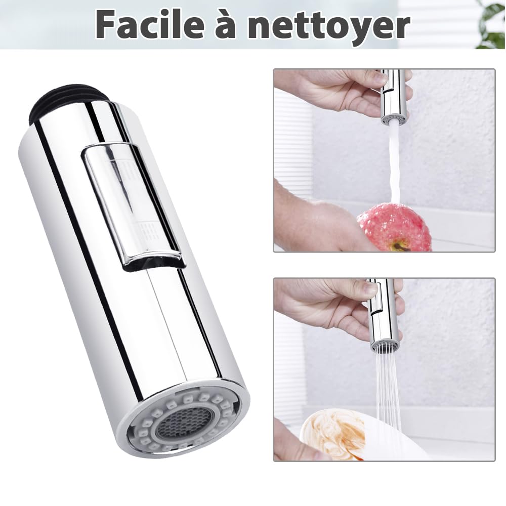 Plus polyvalent ---- idéal pour la cuisine ou la salle de bain pour éviter les éclaboussures d'eau et réduire le gaspillage d'eau Haute résistance, résistant à la corrosion] Le robinet extractible à douchette 2 modes est fabriqué en plastique de haute qualité et traité grâce à une technologie de galvanoplastie épaississante multicouche à neuf niveaux. Haute résistance 【Haute résistance, résistant à la corrosion】 Le robinet extractible à douchette 2 modes est fabriqué en plastique de haute qualité et traité grâce à une technologie de galvanoplastie épaississante multicouche à neuf niveaux. La pomme de douche peut contrôler la quantité d'eau à tout moment, ce qui la rend très pratique à utiliser. Il empêche également les éclaboussures d'eau à haute pression sur les personnes lorsque vous utilisez votre douche de cuisine. Sollbry Douchette De Robinet Cuisine Douchette, 2 Modes Robinet Pulvérisateur De Cuisine Douchette 2 Modes Robinet Pulverisateur De Cuisine Douchette De Cuisine Extractible Tete Robinet Cuisine Douchette Remplacement Pour Lavabo Salle De Bain 84679844 Haute résistance, résistant à la corrosion, difficile à rouiller ou à décolorer, et peut être utilisé pendant longtemps. 【Facile à installer】 Le robinet de douchette cuisine mesure 9,5 x 3 cm et s'adapte à l'embout du tuyau. Dévissez simplement l'ancienne pomme de douche et remplacez-la par la nouvelle., Aucun outil requis. 【Économie d'eau】 Le pulvérisateur pommes de douche Tête Robinet, qui peut être utilisé dans la cuisine ou la salle de bain, contribue à réduire dans une certaine mesure le gaspillage d'eau. Robinet Cuisine Douchette Extractible Avec 2 Modes De Pulvérisation Changez le mode de sortie d'eau en un seul clic. Idéale pour les robinets de cuisine, d’évier et de salle de bain, cette tête de pulvérisation offre une polyvalence exceptionnelle. Sa conception anti-éclaboussures assure un nettoyage sans tracas et maintient un environnement propre et organisé