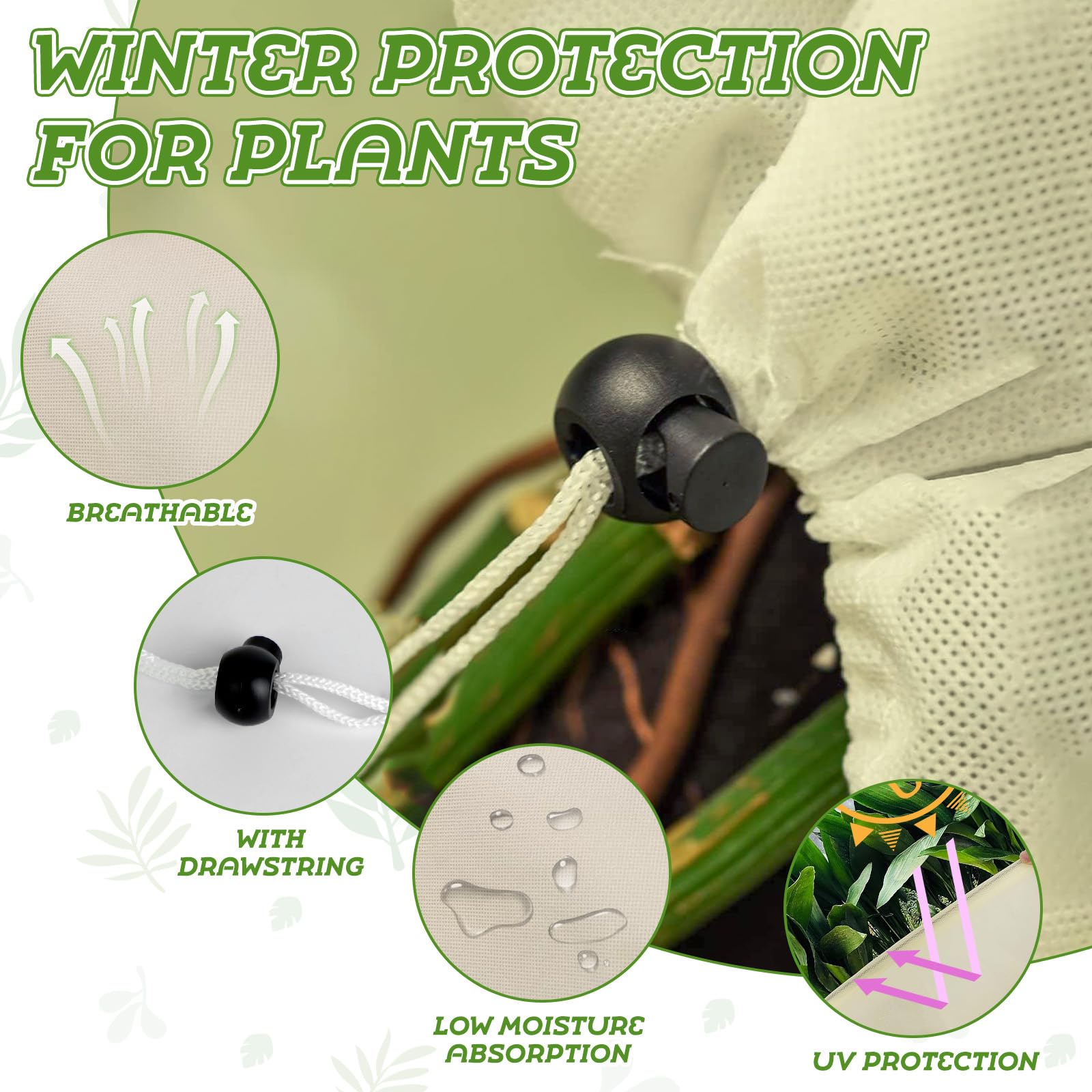 Vérifiez régulièrement l'état des plantes à l'intérieur de la housse et ouvrez et fermez la fermeture éclair de manière appropriée pour assurer la circulation de l'air. Housse de protection pour plantes - Voile Hivernage - Pack de 2 - Réutilisable - 120x180 cm. En 1 fois. 22,76 €. 22 €76. En 4 fois Cette Housse Hivernage Plante avec Cordon de Serrage protège vos plantes du froid et du gel pendant l'hiver, assurant ainsi leur croissance saine ! 🌲【Protection polyvalente des plantes】 : utilisez Voile Hivernage Plante Exterieur pour dissuader naturellement les animaux tels que les oiseaux, les cerfs et les insectes de manger les feuilles et les fruits des arbres. La fermeture éclair s'installe et s'enlève facilement, et la fermeture à cordon garantit une fermeture sécurisée. Solide et résistant aux déchirures, ce qui le rend réutilisable. 🌲【Facile à utiliser】 : les Voile Hivernage Plante Exterieur ont une fermeture éclair sur un côté et un cordon de fermeture sur le bas, ce qui les rend très faciles à utiliser. Qu'est-ce qu'un voile d'hivernage ? Le voile d'hivernage est une protection pour vos plantes en polypropylène non tissé. Nous avons choisi cette matière car elle protège du gel tout en laissant passer l'air, la lumière et l'eau. La lumière qui entre dans la zone protégée crée donc un microclimat plus chaud de plusieurs degrés. Laisser passer l'air et l'eau permet d... --Grâce à un cordon de serrage à fermeture éclair, la Housse Hivernage Plante avec Cordon de Serrage peut être ajustée de manière flexible en fonction de la hauteur et de la taille de la plante, ce qui la rend facile à utiliser et garantit qu'elle est fermement couverte et l'empêche d'exploser ou de tomber au vent., . TOWINGO Cappuccio Protezione Piante, 180x120cm Riparo delle Piante d'inverno con Voilage Hiver Plante LINSOCLE Lot De 2 Voile Hivernage Plante Exterieur, 120 X 180cm Voile Dhivernage,Housse Du2019Hivernage Arbre, Housse Hivernage Palmier Avec Cordon De Vounot Lot De 3 Housse Hivernage 🌲【Flexible et solide】 : Voile Hivernage Plante Exterieur est fabriquée en tissu non tissé de haute qualité de 120 x 180 cm, qui est densément épais, stable et solide, augmente la température à l'intérieur de la housse pour réduire les basses températures et le gel, et est doux et respirant. --Mesurant 1,2 mètres x 1,8 mètres, Housse Hivernage Plante avec Cordon de Serrage peut répondre aux besoins d'isolation hivernale de différents types de végétation. Elle a un aspect simple et élégant et peut être facilement pliée pour un rangement facile sans prendre de place. Convient aux jardins, balcons, cours et autres environnements. Informations de référence : Nom : Voile Hivernage Plante Exterieur Matériel: tissu non tissé Couleur : blanc Taille: 120x180cm Poids : 0,4kg Objectif : Antigel des plantes et conservation de la chaleur Liste des paquets : 2 x Voile Hivernage Plante Exterieur Suggestions d'utilisation : Mettez une couverture d'hiver sur vos plantes avant l'arrivée de la vague de froid et assurez-vous de verrouiller et d'ajuster la couverture une fois qu'elle est en place.