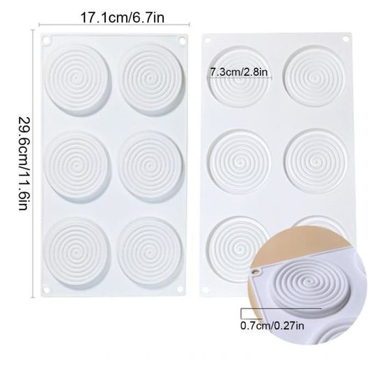 selon vos intérêts et vos idées. Utilisez votre créativité Vous pouvez créer des bougies, des gâteaux, des muffins, des chocolats, des gelées, des glaces, etc. Une façon simple et innovante de créer des décorations uniques qui raviront le regard et le palais. Le silicone est doux et élastique, facile à démouler et plus facile à utiliser. Caractéristiques Haute élasticité , Non collant , Facile à nettoyer , Lavable en machine , Pliable Cercle Cmjn Effet Cercle Logo Cercles Tourbillon Fond Demi-teinte Cercle Dégradé Radial Rond... Moule à aspic anti-adhérent - Moule à oeuf en gelée anti-adhérent (Il y aura un meilleur effet de libération après la congélation 1 heure) Convient également pour Pâques, mariages, cadeaux, anniversaires, fêtes, etc. Utilisation quotidienne et décorations festives : les moules en spirale en silicone sont parfaits pour la fabrication de mousse au chocolat et de bonbons aux fruits, de pudding à la truffe, de gâteaux au fromage, de pâtisseries, de gelées, de savons, de moules et plus encore. Moule en silicone en forme de spirale : le moule est fabriqué en silicone de qualité alimentaire et certifié par la FDA qu'il ne contient pas d'ingrédients nocifs. Moule Silicone Spirale Moule En Silicone En Forme De Spirale Moules à Gâteau 3D Mousse Pour Crème Glacée Pâtisserie Au Moule Spirale Silicone Rond Moule Silicone Spirale Moustique - Anti-Adhérent 3D Cercle Tourbillon à Savon DIY Artisanat pour Bonbons Modernes Convient Haute/Basse Température Mousse Cake Pâtisserie, 2pcs Taille du produit : le paquet contient 1 moule avec 6 escargots ronds à l'intérieur (L x l x H : 29 x 17 x 1 cm) + 1 moule avec 15 cercles à l'intérieur (L x l x H) : 30 x 17 x 0,8 cm. Il est particulièrement adapté aux appartements de taille moyenne ou petite. Passe au four, au réfrigérateur et au micro-ondes, facile à nettoyer et passe au lave-vaisselle. Un cadeau festif pour les enfants Joliment façonné et avec un joli design ; vos enfants et votre famille vont l'adorer et c'est le cadeau parfait pour les enfants. Ils sont faciles à nettoyer, la pâte ne reste pas coincée dans le creux et ils peuvent être lavés au lave-vaisselle ou à la main. Ces moules en silicone sont adaptés au four, au micro-ondes et au congélateur.