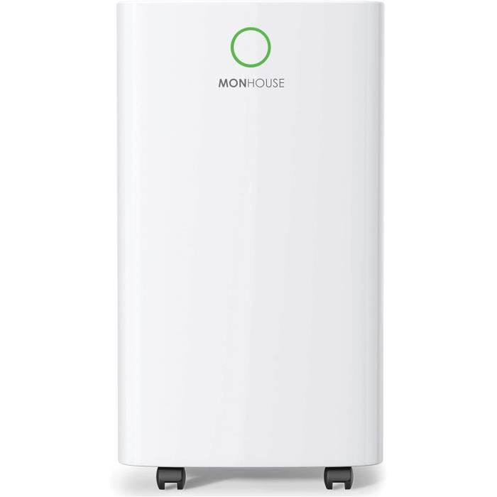 Fonctionnement économe en énergie - 185W Cette fonction intuitive communique visuellement le niveau d'humidité actuel dans l'environnement. Pourquoi adopter des stations électriques portables de moins de 1 kWh Ils empêchent la condensation et les dommages qui en découlent, accélèrent le séchage des vêtements, empêchent la formation de moisissures, protègent le mobilier et contribuent à atténuer les problèmes respiratoires liés à l'humidité. Réservoir d'eau d'une capacité de 2L Développement de produits axé sur l'innovation Il est équipé d'un filtre à charbon pour la qualité de l'air, de 2 vitesses de ventilation pour la personnalisation et de 3 modes : Mode continu pour le séchage du linge, mode sommeil pour un fonctionnement silencieux pendant la nuit et mode cible pour définir une plage d'humidité préférée. Les déshumidificateurs offrent d'avantages qui contribuent à un environnement plus sain et plus confortable. Le déshumidificateur offre une capacité impressionnante de 12 litres par jour et un réservoir d'eau de 2 litres pour un minimum d'encombrement. De plus, il intègre un affichage en temps réel du pourcentage d'humidité, vous fournissant des informations numériques précises sur le niveau d'humidité. Il existe deux options d'évacuation : soit vous retirez manuellement le réservoir d'eau et versez l'eau recueillie, soit vous branchez le tuyau fourni pour expulser automatiquement l'eau recueillie. Déshumidificateur 50L/Jour, jusqu’à 60㎡, 4 Modes, 2 Vitesses De Vous pouvez utiliser le panneau de commande à touches tactiles, qui permet d'effectuer des réglages directement sur l'appareil. Ultra-silencieux et économe en énergie grâce à la technologie la plus récente Déshumidificateur ultra-silencieux et économe en énergie : Il intègre une technologie avancée pour un fonctionnement silencieux (niveau de 45 dB) et une efficacité énergétique (185 watts), ce qui signifie que cet appareil fonctionne avec 5., 5 cent par heure. En extrayant efficacement l'excès d'humidité de l'air, il contribue à maintenir un taux d'humidité optimal, ce qui réduit la formation de condensation sur les surfaces telles que les fenêtres, les murs et les miroirs. MONHOUSE Déshumidificateur numérique 12 l/jour - Mode veille, minuterie 24 heures pour le lavage, la chambre, le cave, le garage et la cuisine - Déshumidificateur électrique portable - Déshumidificateur et d'humidité Ce déshumidificateur est doté d'un indicateur d'humidité à trois couleurs. Éradiquer l'humidité, les moisissures noires et les odeurs associées Le déshumidificateur MONHOUSE est une solution puissante pour éradiquer l'humidité et prévenir la formation de moisissures noires. Ce déshumidificateur vous permet de contrôler l'appareil du bout des doigts. Arrêt automatique en cas de saturation Réduire la condensation Le déshumidificateur MONHOUSE joue un rôle crucial dans la réduction de la condensation. Cette fonction innovante vous permet de contrôler et d'ajuster les paramètres du déshumidificateur à distance, où que vous soyez, à l'aide de votre smartphone ou de votre tablette. Extrait jusqu'à 12 litres d'humidité par jour - Idéal pour l'humidité persistante, la condensation et la lutte contre les moisissures dans les grandes pièces et... Ce déshumidificateur peut soulager l'inconfort, réduire les allergènes et créer un environnement respiratoire plus sain en maintenant une plage d'humidité intérieure optimale. Options de double drainage Le déshumidificateur MONHOUSE offre des options de drainage polyvalentes pour votre confort. Il est doté de 2 vitesses de ventilation pour une personnalisation et de 3 modes : Mode continu pour le séchage du linge, mode sommeil pour un fonctionnement silencieux pendant la nuit et mode cible pour définir une plage d'humidité préférée. Cela permet de prévenir efficacement les dommages et la détérioration potentiels causés par une humidité excessive. La minuterie intégrée de 24 heures optimise la consommation d'énergie. Spécialistes du traitement de l'air Pour plus de commodité, le déshumidificateur propose une application à télécharger gratuitement. Des milliers de clients satisfaits Il est doté d'une fonction d'arrêt automatique, ce qui évite les déversements et améliore la commodité d'utilisation. 3 réglages et 2 vitesses de ventilation , Minuterie 1-24 heures Le dégivrage automatique garantit un fonctionnement continu. Aide concernant l'humidité et les problèmes respiratoires Le déshumidificateur MONHOUSE s'attaque directement au lien entre l'humidité et les problèmes respiratoires. Ce déshumidificateur est compact et léger, ce qui facilite son positionnement et son transport selon les besoins. Le témoin lumineux change de couleur en fonction du niveau d'humidité : bleu pour une faible humidité, vert pour une humidité optimale et rouge pour une humidité élevée. Sa portabilité est encore améliorée par l'inclusion de roulettes, qui vous permettent de le faire glisser sans effort d'une pièce à l'autre. Cela lui permet d'extraire efficacement des quantités importantes d'humidité de l'air, réduisant ainsi les niveaux d'humidité dans les espaces intérieurs - garantissant une performance constante dans le maintien d'un environnement confortable et plus sain.