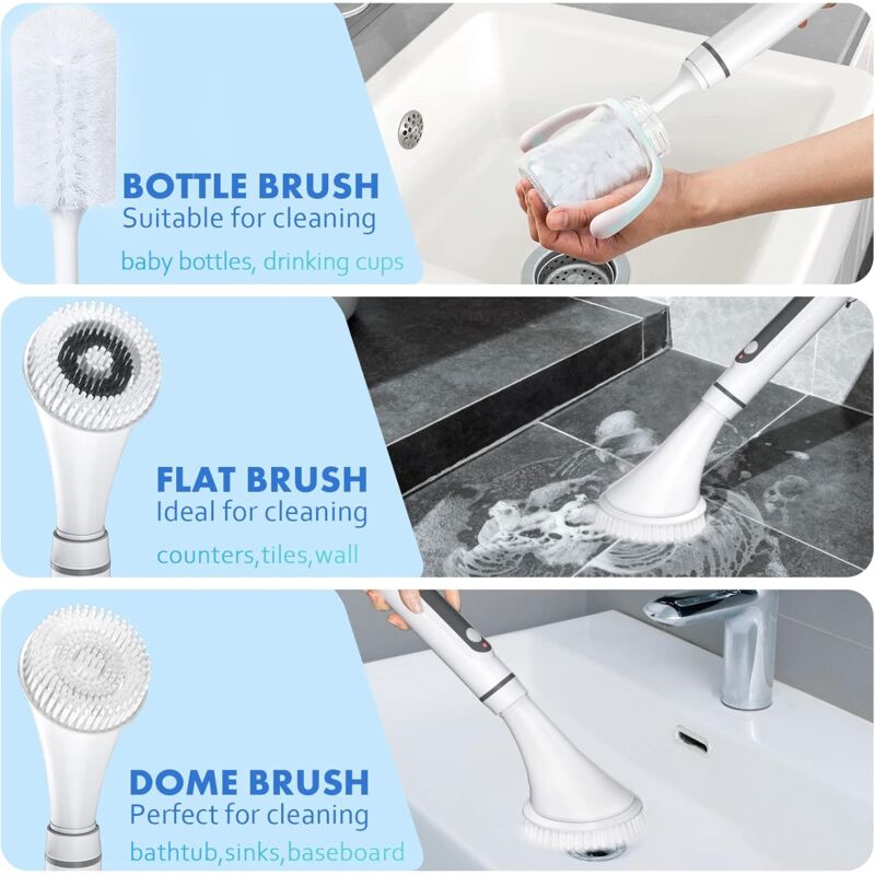Outil de nettoyage polyvalent : que vous affrontez la saleté dans la salle de bain, la cuisine ou sur des surfaces vitrines, cette brosse nettoyante pour la douche sans fil se distingue dans une variété de situations, ce qui rend vos tâches de nettoyage moins fatiguantes et plus efficaces Brosse Electrique Nettoyage Rotative, Brosse de Nettoyage sans Fil Deux réglages de vitesse : cette brosse de nettoyage électrique dispose de deux réglages de vitesse, vous permettant de choisir la vitesse appropriée en fonction de vos besoins de nettoyage. Choisissez la vitesse basse pour le nettoyage quotidien ou la vitesse élevée pour un nettoyage en profondeur Confort sans fil : avec la batterie intégrée de 2000 mAh, notre brosse nettoyante électrique peut durer de 50 à 90 minutes avec la batterie complètement chargée. Deux réglages de vitesse : cette brosse de nettoyage électrique dispose de deux réglages de vitesse, vous permettant de choisir la vitesse appropriée en fonction de vos besoins de nettoyage. Notre electric spin scrubber permet d'économiser du temps et des efforts tout en protégeant les articulations et les muscles, c'est un cadeau qui ne s'oublie pas Son design sans fil vous permet de nettoyer sans effort dans n'importe quel espace, sans linconvenient des fils qui se mettent devant Utilisez la grande brosse plate pour les sols, la brosse dôme pour les baignoires et les lavabos, la petite brosse plate pour la vaisselle et plus encore Brosse Nettoyante électrique Rechargeable Nettoyeur électrique Brosse Rotative Brosse Nettoyage électrique Power Spin - 4 Têtes Pour Cuisine Salle De Bain Brosse Nettoyage électrique Rechargeable Brosse Nettoyante Electrique