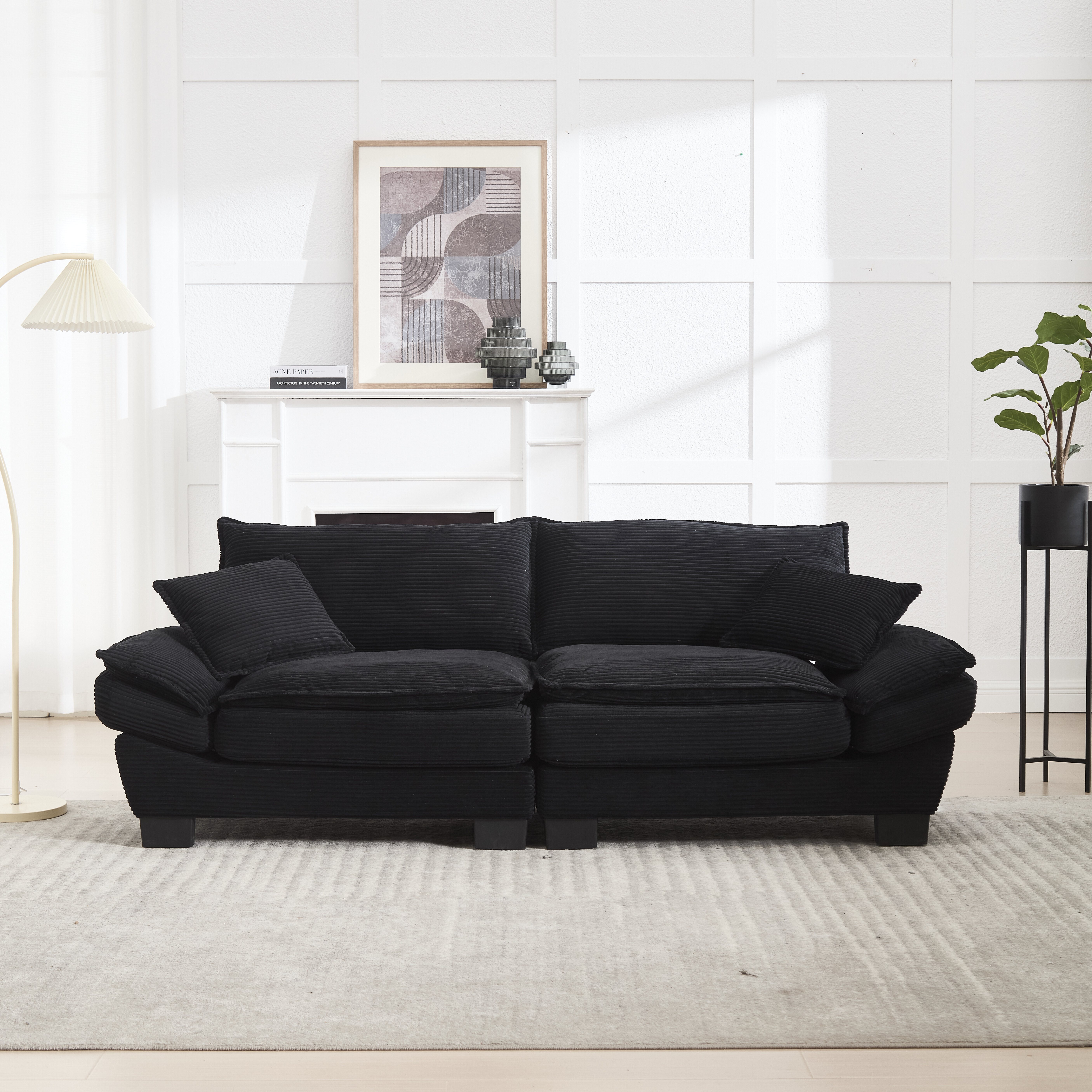 KOMHTOM Petit Canapé 2 Places En Velours Côtelé Avec Coussins Confortables, 2 Repose-Pieds, Accoudoir Courbe Et Rembourré - Canapé Modulable Moderne (Beige