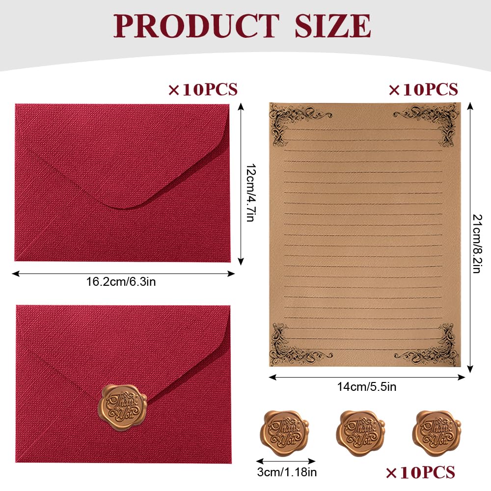 La teinte brun antique renforce non seulement l'attrait visuel, mais réduit également l'éblouissement, ce qui soulage considérablement la fatigue oculaire pendant l'écriture. Son excellente absorption de l'encre le rend idéal pour les stylos à plume et autres instruments d'écriture, tout en restant compatible avec la plupart des imprimantes pour répondre aux besoins modernes et traditionnels. 10 Pièces Papier à Lettre et Enveloppe Vintage,Ensemble de Papeterie Vieilli,Papier de Correspondance avec Autocollants de Cire,Writing Paper and Envelopes,Stationary Paper pour Invitation Ensemble de papeterie vintage, papier à lettres avec enveloppes Ce lot comprend 20 articles de papeterie au design vintage et 10 enveloppes assorties. Ce sont de jolis papiers blancs avec dadorables théières et tasses. Les enveloppes sont dun joli lavande. Le papier mesure environ ; 6,25 x 8,75 Le cadeau idéal : ce magnifique ensemble de papeterie vintage est un cadeau idéal pour les anniversaires, les mariages, les anniversaires de mariage et autres occasions spéciales. Ensemble de Papeterie Vintage Papier, 10 Enveloppe Vintage 20 Son style nostalgique unique ne manquera pas d'apporter une joie et une émotion inoubliables à son destinataire. Vous pouvez également le découper librement pour vos projets de bricolage, afin de créer des pièces artistiques sur mesure. Enveloppes Vieillies Bordeaux 60 Pièces Enveloppe Vintage, Enseble De Papeterie Vintage, Set Papier Papier à Lettres Vintage Design vintage : les motifs vintage et les tons chauds confèrent à notre ensemble de papeterie un charme historique qui évoque la nostalgie. Ce set de correspondance vintage vous invite à redécouvrir le romantisme de l'écriture traditionnelle. Capturez vos sentiments les plus sincères à l'aide d'un stylo et d'encre, en recréant pleinement l'expérience épistolaire classique pour rendre vos expressions d'affection encore plus émouvantes.
