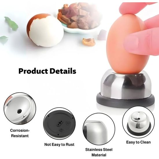 En plus de sa sécurité au contact des aliments, ce matériau garantit également une durabilité exceptionnelle. Finis les œufs qui éclatent à la cuisson ! Ces 2 pique-œufs en acier inoxydable 304 et PP permettent de percer délicatement la coquille avant la cuisson Mécanisme à ressort automatique : grâce au mécanisme à ressort intégré, la pointe du pic à œufs reste protégée. Spécifications: Matériau : acier inoxydable., Couleur : argenté. Utilisation polyvalente : notre perforateur à œufs est non seulement idéal pour la maison ou la cuisine, mais est également idéal pour les excursions en camping et d'autres activités où il est important de préparer des œufs sans éclats. Perce Oeuf Pique-œufs, Coupe-œufs Durs, En Acier Inoxydable Avec Socle, Trou Pratique Pour Perce-œufs, Tisonnier Pour Trou D'œufs, Boulangerie Et Plus Encore Egg Cuber Cette fonction augmente la sécurité et simplifie considérablement la manipulation. Dimensions du produit : 1 x 1 x 1 cm ; 30 g., Contenu : 1 pioche à œufs., Remarque : 1., En raison des effets de l'éclairage pendant la prise de vue et des différents réglages du moniteur, les couleurs du produit sur l'image peuvent différer légèrement de la couleur du produit livré., 2., Les mesures étant prises à la main, les tailles indiquées peuvent varier de 1 à 2 cm. Design en acier inoxydable 304 de qualité supérieure : notre coupe-œufs est fabriqué en acier inoxydable 304 de qualité supérieure. [Facile à utiliser] En seulement trois étapes, vous pouvez percer un trou précis dans votre œuf : placez le pic à œufs sur une surface plane, appuyez doucement sur l'œuf et lorsque vous entendez un clic, vous êtes prêt. Lot de 2 piques à œufs en acier inoxydable et plastique - Pique-œufs Utilisation polyvalente : notre perforateur à œufs est non seulement idéal pour la maison ou la cuisine, mais est également idéal pour les voyages en camping et d'autres activités où il est important de préparer des œufs sans éclats. Épine De Eid-Pique-Œufs, Design Noble, Acier Inoxydable, Argenté-Noir, 10812280[u2877...