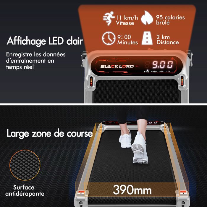 Tapis De Marche Bigzzia Black Lord Tapis De Marche Avec Poignée, Maison Bureau, 3,2 CV, Inclinaison 9%, 16 Km/h, Portable Sous Bureau, Bluetooth, Commande Bracelet, Amortisseur De Chocs, Aucun Assemblage,Poignée, Rose Tapis De Course Pliable Electrique Cadre acier léger mais résistant pour durabilité. Tapis roulant marche Achetez votre BLACK LORD Tapis de Course/Marche Électrique Maison Bureau Gymnase Fitness MS2 dans notre rayon Tapis de course sur Rue du Commerce ⚡ [PUISSANCE & INTELLIGENCE] Moteur 3., 0HP avec contrôle numérique (1-11km/h). ⚡ [FACILE À UTILISER] Capacité 130kg. KingSmith Tapis roulant WalkingPad S1 - Black a rate, tasso 0 FlexTechTM réduit l'impact articulaire - parfait pour marche/course légère. 1 Toutes les fonctions 2 Inclinaison de 4 % 3 Télécommande 4 390 mm de largeur Cadre robuste en acier inoxydable. 1 Pour le travail 2 Pour la maison 3 Dimension 4 Nous trouver ? Parfait sous un bureau debout. ⚡ [OPTIONS D'ENTRAÎNEMENT VARIÉES] Inclinaison 3 niveaux et tapis 390mm pour confort. Synchronisation avec l'app FitShow ou télécommande bracelet pour statistiques en temps réel. 1 4en1 Tapis de course 2 Divers APP scénario 3 Programmes multiples