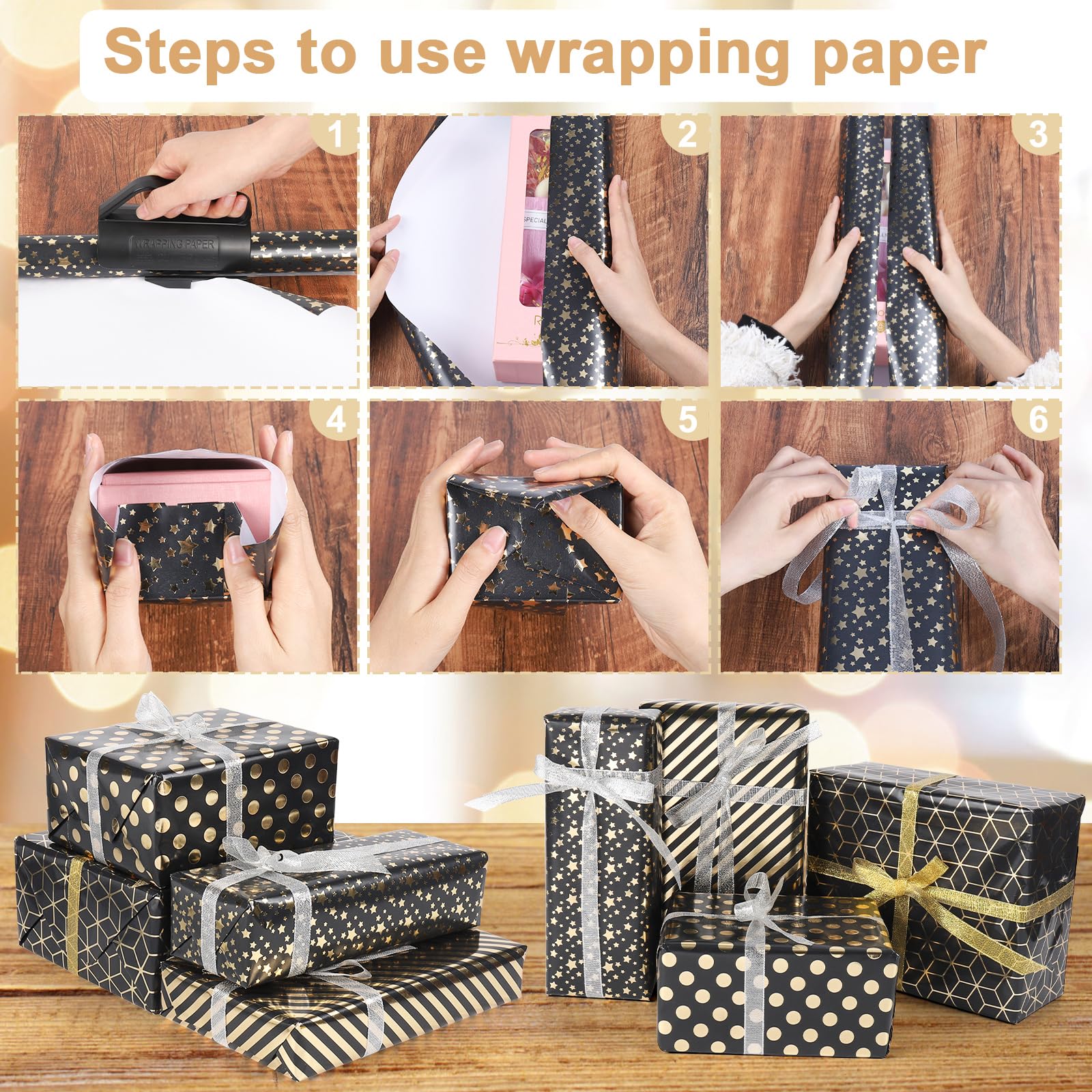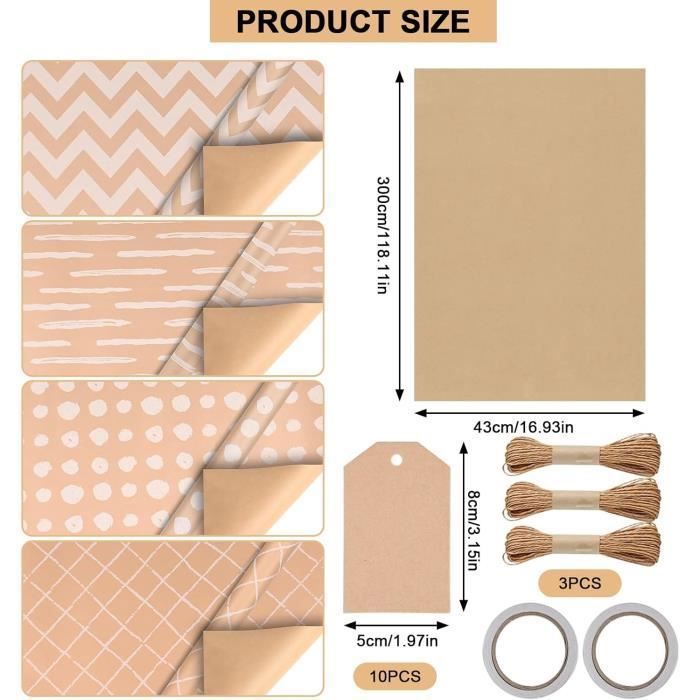 GuKKK 6 Rouleau de Papier d'emballage de Noël, 43 x 300cm Rouleau de Papier d'emballage Cadeau, Papier Cadeau pour Noël avec 2 Rubans, Imprimé avec Motif, Emballage des Papier Cadeaux, Décoration Il ne se déchire pas et ne se froisse pas facilement et bénéficie d'une impression écologique. Rouleau Papier Cadeau Noël GuKKK 6 Rouleau De Papier D'emballage De Noël, 43 X 300cm Emballage Cadeau Noel 🎁🎁Dimensions : GuKKK propose 6 rouleaux de papier cadeau, chacun mesurant 300 cm de long et 43 cm de large. La surface a un éclat métallique et est très attrayante. Il peut également être utilisé pour des projets créatifs. 2 pièces de coupe-papier d'emballage, coupe-papier cadeau avec 2 lames remplaçables, 4 roues, outil compact pour couper les rouleaux de papier d'emballage cadeau de Noël, couleur noire 🎁🎁Rouleau de papier cadeau de Noël : Vous recevrez 6 rouleaux de papier cadeau, 1 rouleau de ruban doré, 1 rouleau de ruban argenté, 1 paquet de fil doré, 2 cartes de Noël à suspendre, 2 rouleaux de ruban adhésif double face et 2 feuilles d'autocollants. Nos motifs et couleurs sont parfaits pour les fêtes et ajouteront une touche de couleur à tous vos cadeaux. Durable et recyclable, non toxique et inodore, il est un choix véritablement écologique. 🎄🎄Motif de Noël classique : Le papier cadeau bleu, noir et blanc est disponible en 6 motifs différents, avec des sapins de Noël, le Père Noël, des rennes, des flocons de neige et d'autres joyeux motifs de Noël.