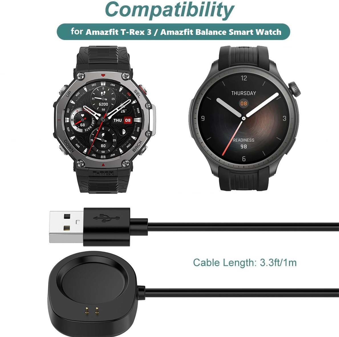 Il constitue une solution fiable de remplacement pour votre smartwatch, garantissant une recharge efficace et durable, idéale pour un usage quotidien ou en déplacement La conception robuste en ABS souple et fil de cuivre de haute qualité garantit une excellente stabilité lors du transfert de courant, réduisant ainsi les risques de coupure de charge. Simple d’utilisation et conçu pour durer, ce câble est l’accessoire indispensable pour garder votre montre Amazfit toujours prête à vous accompagner au quotidien, que ce soit pour le sport, le travail ou vos activités de loisir. Votre montre est protégée contre les dommages, assurant une recharge sûre et fiable à chaque utilisation Compact et léger, il se glisse aisément dans une poche, un sac ou une trousse de voyage, faisant de lui un compagnon idéal pour vos déplacements. Câble de Chargement USB pour Amazfit GTR 2 GTR 2e GTS 2 GTS 2e GTS 2 Sa conception résistante garantit une meilleure longévité et une utilisation répétée sans risque d’usure prématurée Sécurité renforcée: Grâce à son régulateur de tension intégré et à la protection PTC, ce câble de charge compatible avec Amazfit Balance évite les risques de surtension et de surchauffe. Chargement sûr : ce câble de charge dispose d'un régulateur de tension et d'un PTC à l'intérieur pour protéger votre appareil contre les dommages causés par la surintensité lorsqu'il est connecté à la source d'alimentation, ils protègent votre montre contre les dommages lors de la charge Amazfit Balance 2 Kullnicawa Câble De Charge De Rechange Pour Amazfit T-REX 3 Câble Sécurité PTC Recharge Rapide Compatibilité étendue: Ce câble de charge est spécialement conçu pour être compatible avec Amazfit Balance, Balance 2, T-Rex 3 et Helio Strap. Ce câble se distingue par sa solidité et sa longévité, ce qui en fait un choix économique et durable par rapport aux modèles classiques. Câble USB Compatible avec Huami Amazfit Balance A2286 / Balance 2 A2429 / T-Rex 3 / Helio Strap câble - Câble Rechange Chargeur Fitness Tracker Montre connectée - Noir Pratique et polyvalent, ce câble compatible Amazfit se connecte facilement à différents types de sources d’alimentation : adaptateur secteur, ordinateur portable, powerbank ou chargeur de voiture. Matériaux durables: Fabriqué en ABS souple de haute qualité et en fil de cuivre robuste, ce câble usb Amazfit T-Rex Pro assure une transmission de courant stable. Conçu comme une solution de rechange fiable, ce câble répond parfaitement aux besoins des utilisateurs recherchant un chargeur sûr, durable et facile à transporter. Compact et léger, il est parfait pour la maison, le bureau ou vos voyages