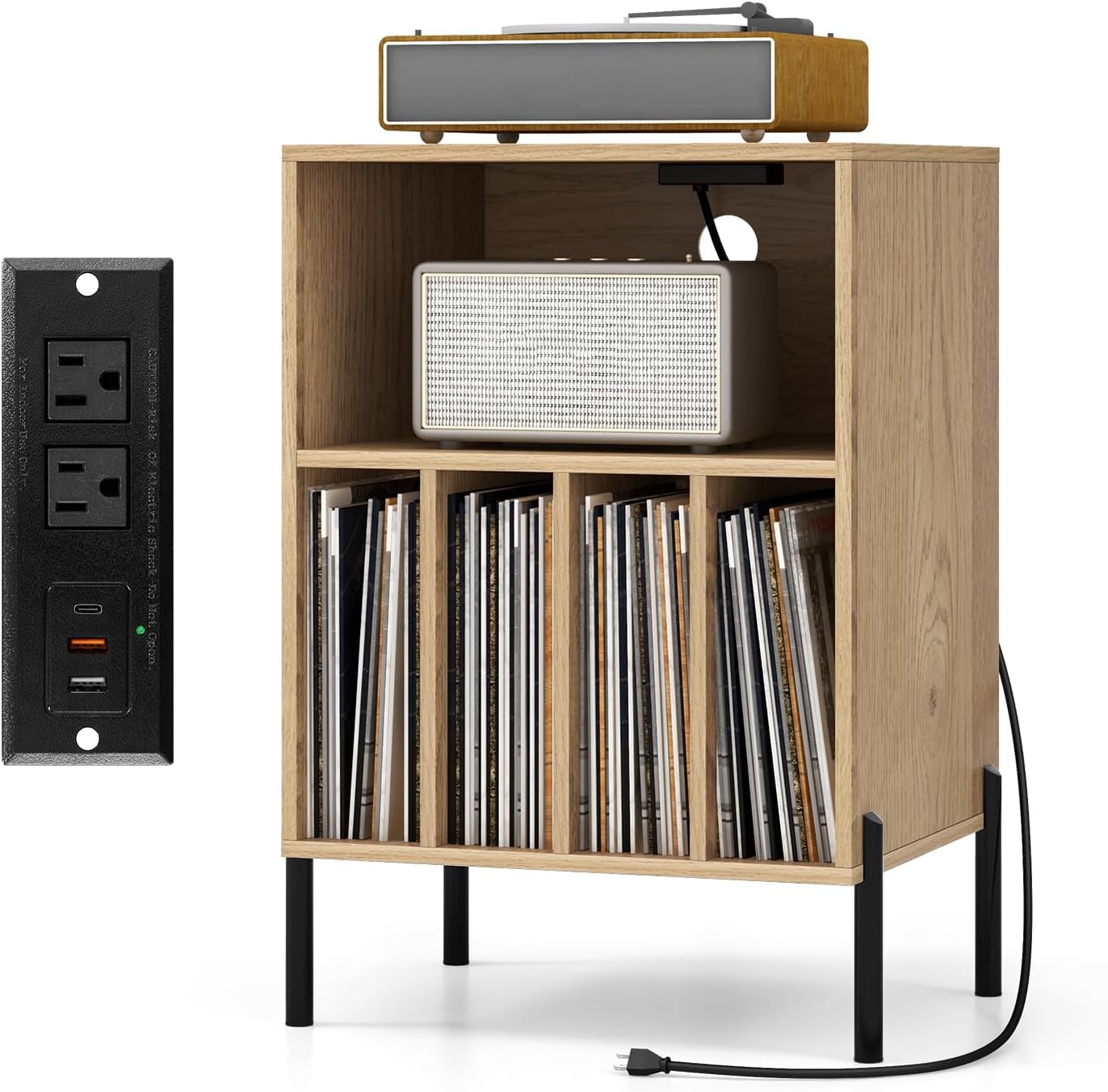 Meuble MDF Ports USB Type-C VEVOR s à 2 Niveaux, Support De Tourne-disque Meuble Platine Vinyle La distance de 15,5 cm du sol facilite aussi le nettoyage. Améliorez votre expérience d'écoute vinyle] : entrez dans les sons riches du vinyle avec notre table de tourne-disque polyvalente, équipée d'une multiprise intégrée avec 2 prises, 2 ports USB et 1 port de type C. Chargez vos appareils sans problème tout en profitant de votre musique préférée Le GOPLUS Meuble Platine Vinyles avec station de charge et 2 prises est une option pratique pour les audiophiles. Un KOMFOTTEU disposant de 5 compartiments ouverts offre une excellente organisation pour vos accessoires Soyez prudent lorsque vous déplacez le meuble pour éviter les blessures personnelles. Il peut servir de table de chevet ou d'appoint, offrant des possibilités d'aménagement infinies. Meuble Tourne-disque Vinyle Avec Prise, Support Platine Vinyle Pour 150 Albums Naturel Détails Bien Faits - Avec un compartiment central de 25,5 cm de hauteur, cet espace offre une grande capacité pour vos équipements audio, décorations et collections. Description du produit Organisez et exposez votre collection de vinyles avec ce support de tourne-disque spacieux pouvant contenir jusqu'à 150 disques avec un plateau, un compartiment central et 4 séparateurs pour un rangement efficace. Polyvalente et élégante, cette table d'appoint du milieu du siècle est idéale pour n'importe quelle pièce. Assurez-vous de ne pas dépasser cette limite de poids. Caractéristiques : Design moderne, parfait pour intégrer dans tous les environnements de vie Rangement modulable permettant d'organiser facilement vos objets variés Surfaces lisses faciles à nettoyer, garantissant un entretien minimal Finitions soignées ajoutant une touche d'élégance à votre décoration intérieure Structure légère, facilitant le déplacement dans n'importe quelle pièce Capacité d'accueil optimisée pour une utilisation quotidienne pratique Économie d'espace avec un design compact, idéal pour petits appartements Specifications: Couleur: Noyer, Naturel Matériau: MDF, Métal, Bois d'Ingénierie Dimensions hors tout: 53 x 45 x 78,5 cm (L x l x H) Dimensions de l'étagère ouverte du milieu: 50 x 25,5 x 43 cm (L x l x H) Dimensions des étagères longues: 33 x 11,5 x 43 cm (L x l x H) Dégagement au sol: 15,5 cm Longueur du cordon d'alimentation: 150 cm 2 prises secteur: 125 V/12 A 2 ports USB et 1 Type-C: 5 V/3 A Capacité de poids du comptoir: 50 kg Capacité de poids de l'étagère du milieu: 30 kg Capacité de poids de chaque étagère longue: 10 kg Poids net: 18 kg Le Colis Comprend: 1 x Support de Platine Vinyle 1 x Manuel de l'Utilisateur Avertissement De Sûreté Attention : ce meuble peut contenir jusqu'à 120 kg. Construction Durable - Conçu en MDF de qualité supérieure et pieds en métal, ce casier à disques supporte jusqu'à 120 kg. Grand Espace de Rangement - Avec ses dimensions de 53 x 45 x 78,5 cm, ce support de tourne-disque peut accueillir jusqu'à 150 disques. La station de charge intégrée offre 2 prises secteur, 2 ports USB et un port Type-C, avec un trou de gestion des câbles pour éviter les enchevêtrements.