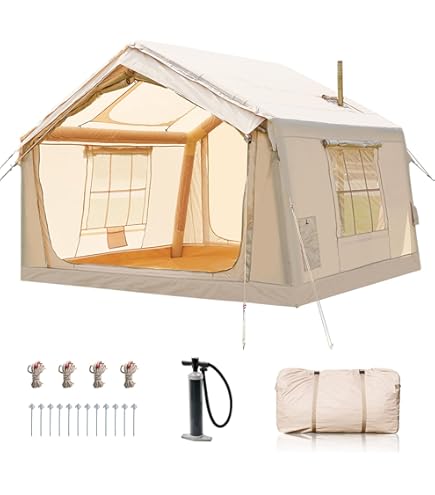 Tente De Camping Instantanée 3 Saisons 8 Personnes Coleman Skylodge Avec Abri Moustiquaire Convertible Double Toit Et Sac De Transport 0766264p Tente De Camping 6 Personnes Tente Gonflable Haut Parleur Tente De Camping Gonflable Avec Pompe, Tente De Glamping, Installation Facile, 4 Saisons, Imperméable Et Coupe-vent, Tente De Cabine De Luxe Avec Fenêtres Attention : cette tente de camping gonflable n'est pas recommandée pour être utilisée en cas de forte pluie pendant une longue période, veuillez la garder au sec avant de la ranger et de la ranger. SHANQUAN Tente gonflable avec pompe, tente de camping pour 4 à 6 personnes, tente familiale gonflable facile à installer pour 4 saisons, tente gonflable imperméable pour le camping avec fenêtres en maille. Il y a 2 entrées d'air sur la tente, en pompant manuellement l'air à travers ces deux entrées d'air, n'oubliez pas de serrer l'autre port de gonflage pendant le gonflage, vous pouvez rapidement le monter en 5 minutes. Tente gonflable avec pompe à air, tente familiale pour 6 à 8 personnes avec cric de poêle, tente de camping gonflable de luxe 4 saisons, installation facile, grandes tentes gonflables pour l'extérieur Il est très facile à installer qu'une tente avec des poteaux ordinaires. SER - Matelas gonflable avec pompe électrique intégrée, matelas... Ventilation et confort : cette tente familiale a la forme d'une petite maison avec deux portes symétriques avec double fermeture éclair pour un accès facile depuis différentes directions, et six fenêtres en maille à 2 couches pour la ventilation de circulation et chaque porte et fenêtre peuvent être sélectionnées en fonction de la demande pour jouer sans ouverture, très pratique et intimité 【Facile à installer】 : cette tente gonflable est construite avec un tube gonflable en PVC d'une seule pièce spécial et est livrée avec une pompe.