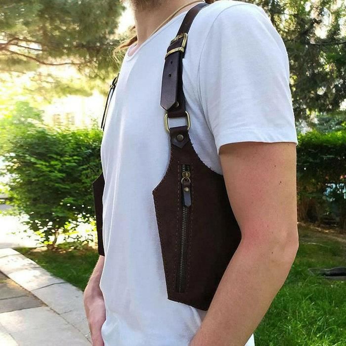 Le pack de taille supporte le poids des épaules. Sac pour homme de type holster fabriqué en cuir de vachette marron, avec effet usé. Cet étui est parfait pour tous ceux qui cherchent à garder leur arme en sécurité Matériaux de haute qualité et réglables: en cuir artificiel et en métal, le cuir PU léger vous fait vous sentir plus confortable, fort et durable; bretelles réglables et réglables. Est parfait pour le travail, la famille, la course à pied, les voyages Objectif: Sac à outils à outils ajusté en plein air masculin et féminin, très adapté aux campeurs, aux randonneurs, aux pêcheurs, aux activités de plein air, etc. Peut également être utilisé comme portefeuille antivol, sac à bandoulière sous les bras, sac caché, sac à dos, sac sous les bras, étui de téléphone portable. Il est très adapté aux activités de plein air telles que les voyages, le travail, l'école, la randonnée, le camping et le cyclisme. Cosplay accessoires - PU Leather Ajoutez le sentiment fort et héroïque, vous faisant ressembler à un chevalier, un chasseur, un soldat ou un soldat, vous ajoute également un tempérament mystérieux. Holster Bag Cuir Homme Vintage Sacoche Holster Biker, Pas Cher Deux poches sont utilisées pour stocker vos effets personnels tels que les téléphones portables, les clés, les stylos, les passeports, etc. Évitez efficacement votre anxiété d'être incapable de porter en raison de la non-concordance de taille. Pourquoi avoir besoin du sac sous les bras médiévaux - la conception innovante des épaules d'épaule, une double conception d'épaule, peut cacher des objets de valeur dans la poche sous la veste. Holster cuir pour revolver. - Holsters et étuis tactiques (10604532 Sac Bandoulière Réglable Sanji Holster À L'épaule En Cuir PU À La Main, Medieval Steampunk Anti-Vol Strap Hidden Portefeuille Portefeuille De Téléphone Portable, Pochette À Sous-Armes À Double Épaule Hommes Noir Holster Portefeuille Fournit exactement ce dont vous avez besoin pour compléter ce look médiéval parfait.