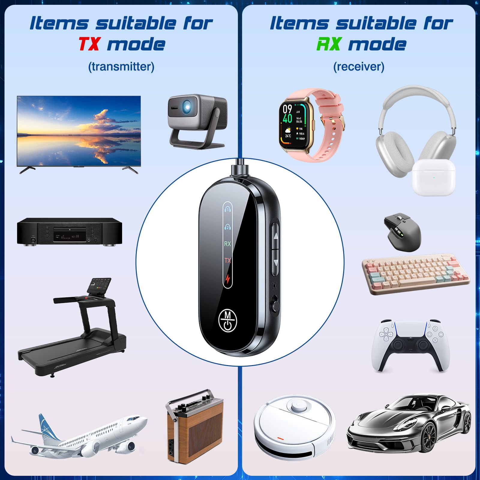TV Son Photo - Découvrez notre offre Transmetteur Récepteur Bluetooth 5.4 Adaptateur Bluetooth 2 en 1 Jack 3.5mm Faible Latence Adaptateur Emetteur RX/TX Ecouteurs. Livraison gratuite à partir de 25€* | Paiement sécurisé | 4x possible | Retour simple et rapide En état de charge complète, il peut lire de la musique en continu pendant jusqu'à 16 heures. Clé Bluetooth Pc Transmetteur Récepteur Audio Bluetooth 5.4 2 En 1, Apt X HD Bluetooth 5.4 Jack 3.5mm Basse Latence 1 TX-Plane 2 TX-TV 3 RX-Car 4 RX-Bluetooth speaker Sa conception de réception privée protège la confidentialité de vos appels, vous permettant de répondre en toute tranquillité même en lieu public. L'appareil est léger et compact, pesant seulement 25g à l'état nu, avec des dimensions de 3,5 x 1,2 x 5,3 cm, facilitant son transport. Easy to use: The 2 in 1 Bluetooth transmitter receiver is compatible with devices without Bluetooth function such as TVs, turntables, stereo systems and amplifiers, offering strong compatibility; the series includes the main device, data cable, airplane adapter and user manual, and is made of durable ABS, with a charging voltage of 5V, 186mA... LAM-Transmetteur Bluetooth Récepteur Multifonction Faible Latence Il se reconnecte automatiquement aux appareils déjà appariés, simplifiant les étapes de connexion et rendant son utilisation plus pratique. Un affichage numérique indique le niveau de batterie, vous permettant de connaître l'état de charge de l'appareil à tout moment et d'éviter une coupure de courant soudaine. Connexion stable: Le transmetteur recepteur bluetooth utilise la dernière technologie Bluetooth V5., 4, offrant une expérience de connexion sans fil plus stable et plus rapide.